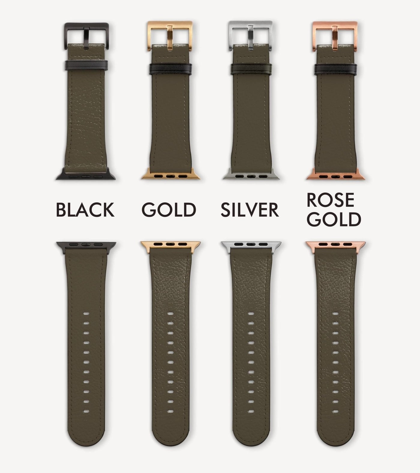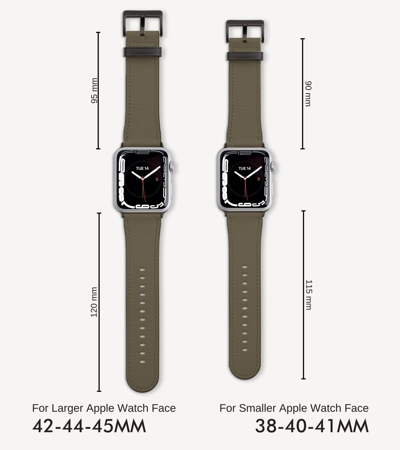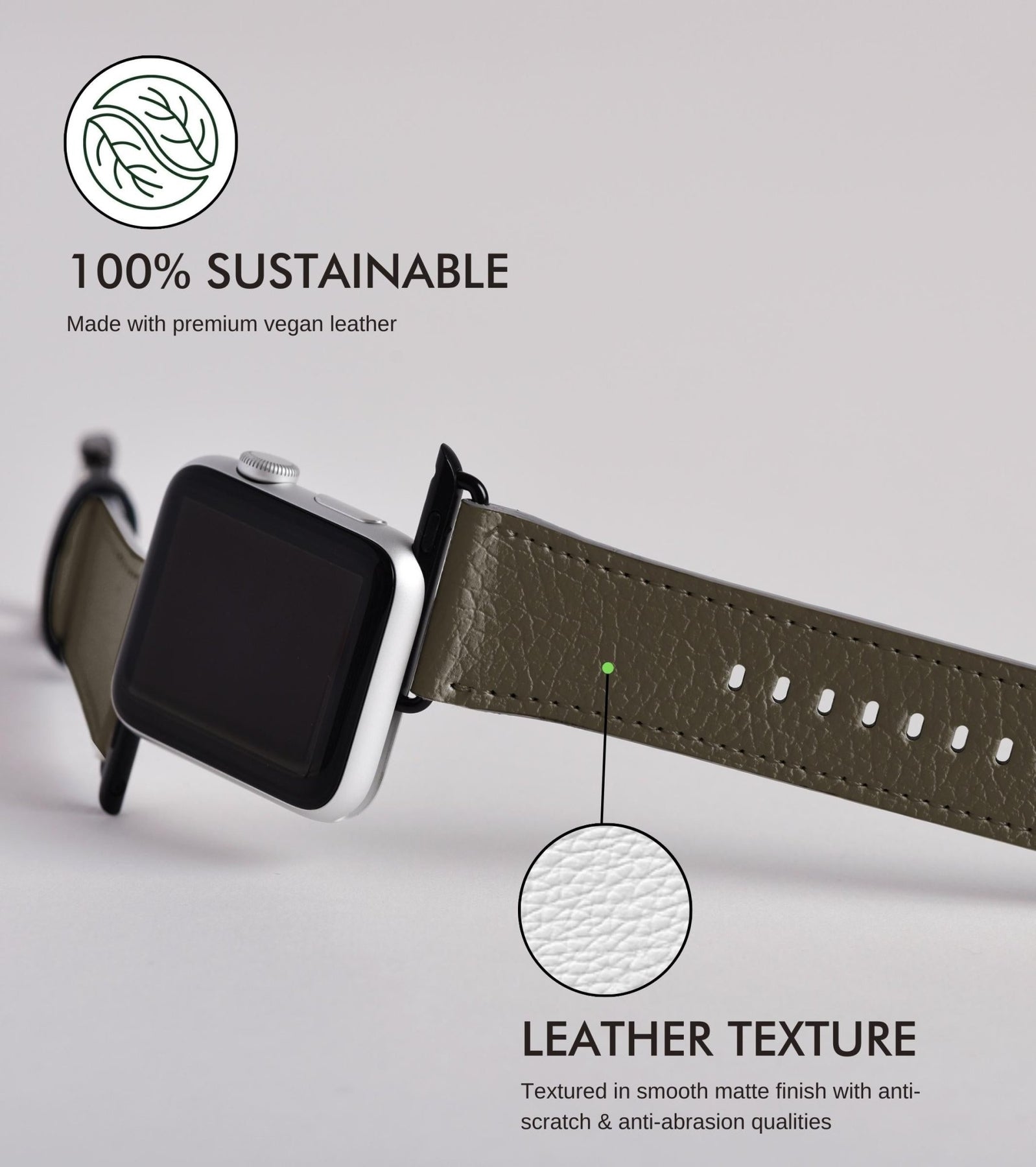 This simple, sleek and stylish Khaki Green Apple Watch Band is ideal for the minimalists and monochrome lovers. With 100% sustainable vegan leather, this band is built for comfort and durability.