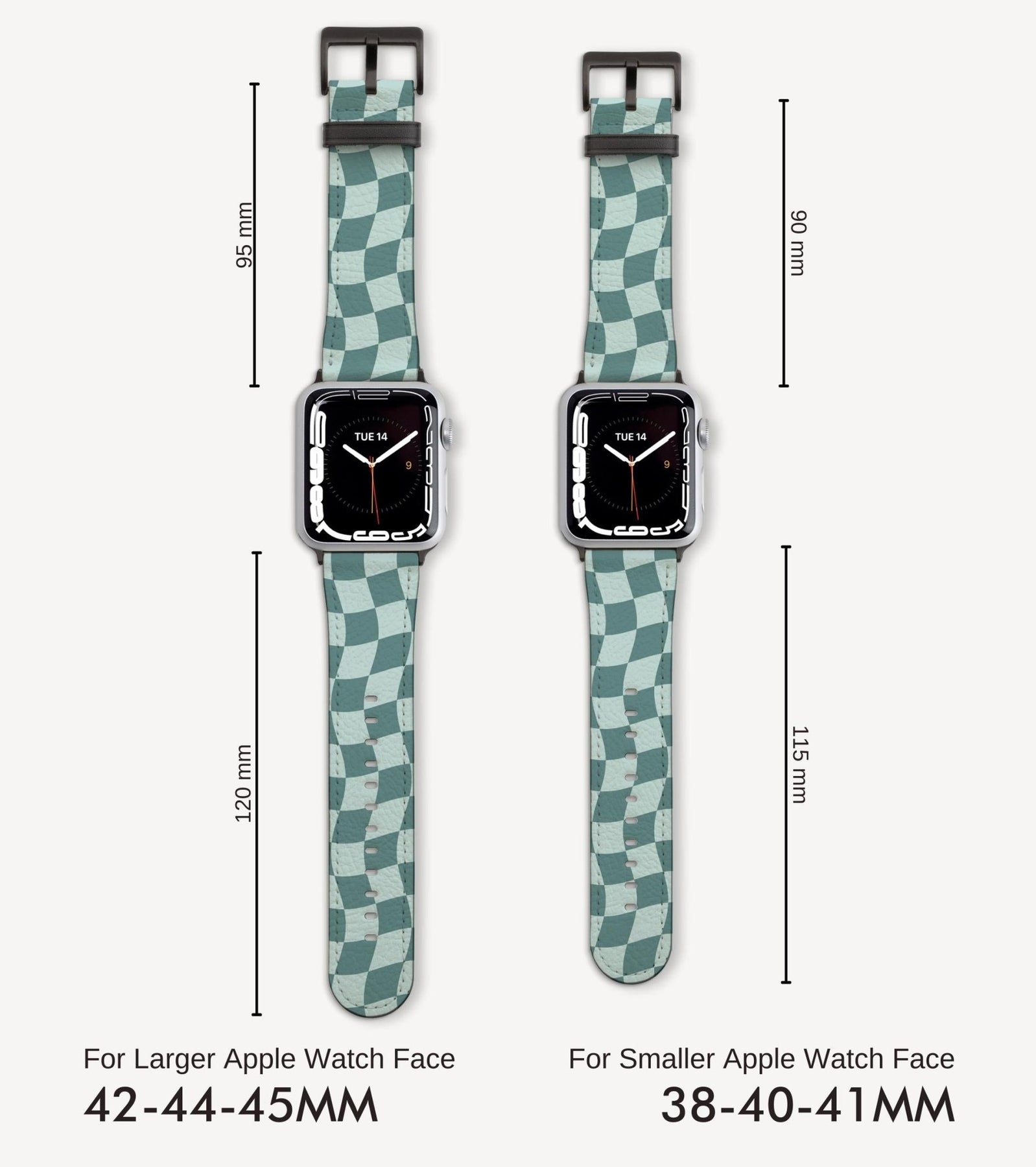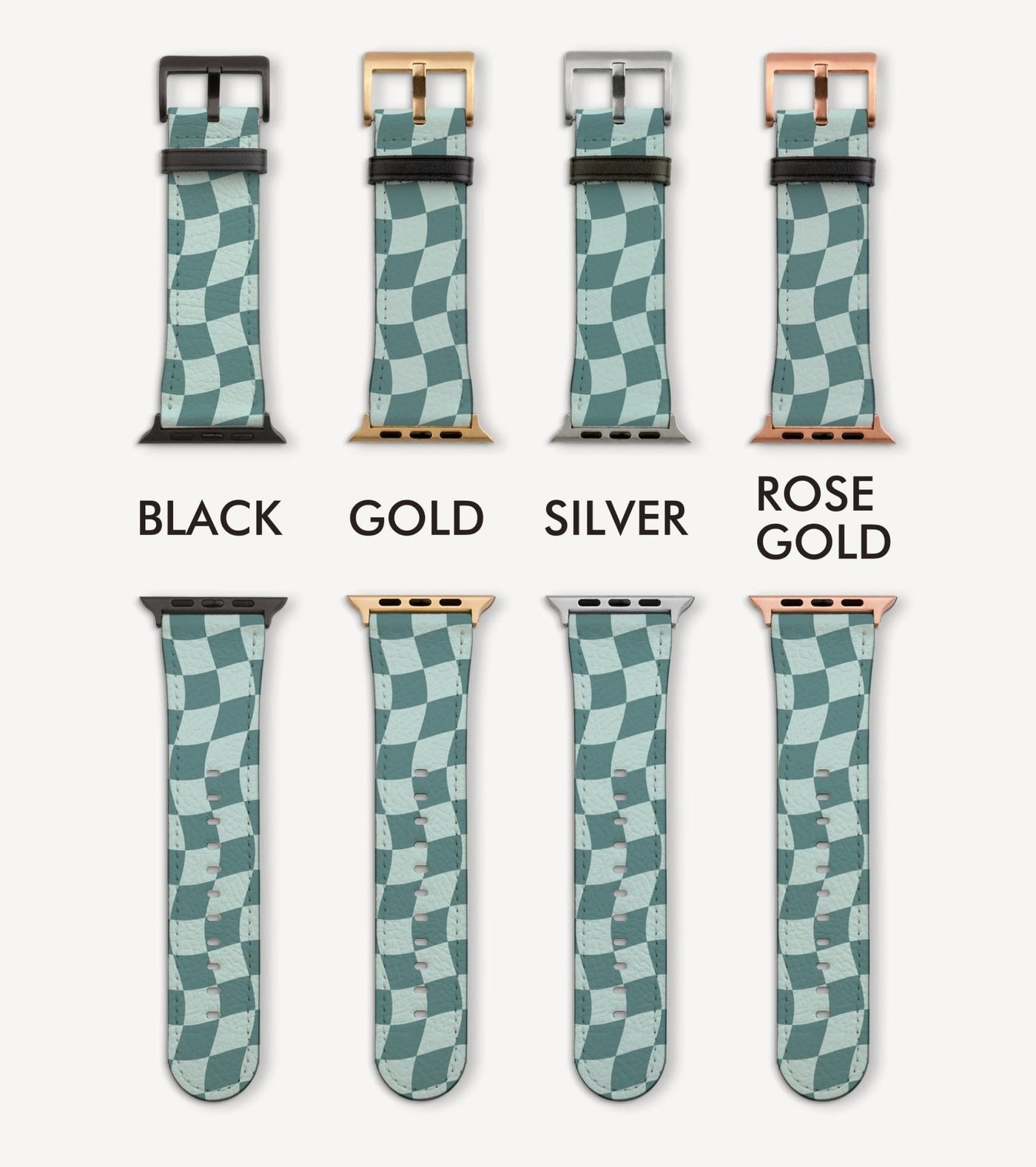 Introducing the Mint Miracle, this elegant Apple Watch Band perfectly captures the spirit of new beginnings and optimistic outlooks. The wavy checkered pattern symbolizes the ups and downs of life and makes a statement that speaks to your innovative, modern spirit.