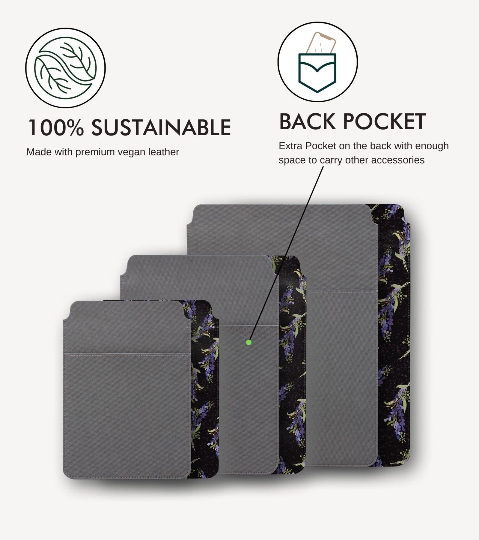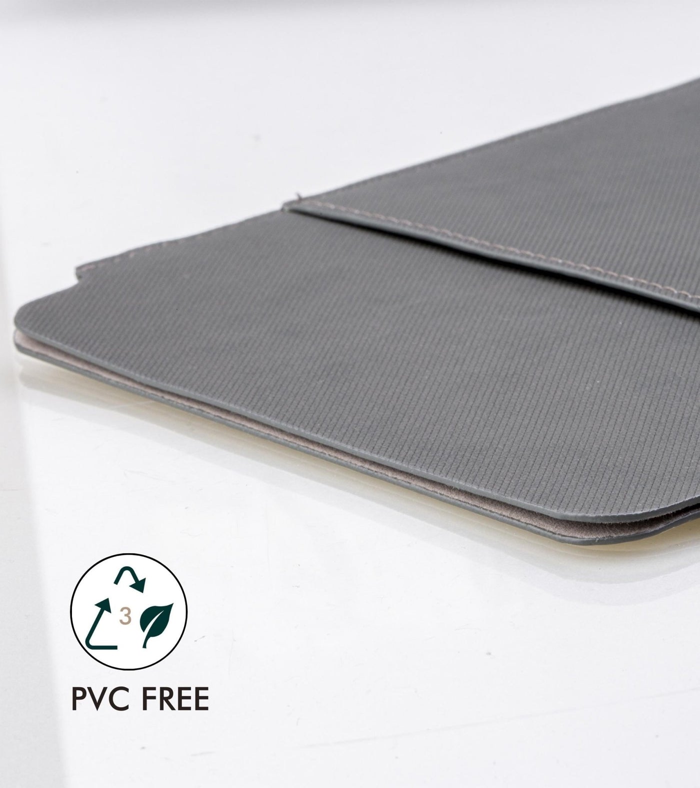 Vegan Leather – We use 100% High quality, premium vegan leather for our laptop sleeves to give you a product that will last. Furthermore, we have fully eliminated the use of PVC in our faux leather, and it complies with PVC free policy and eco regulations. We choose this sustainable material over the conventional leather because it is 100% vegan, made up of planet friendly & animal free materials, has anti-scratch & anti-abrasion qualities and is super modern and durable.