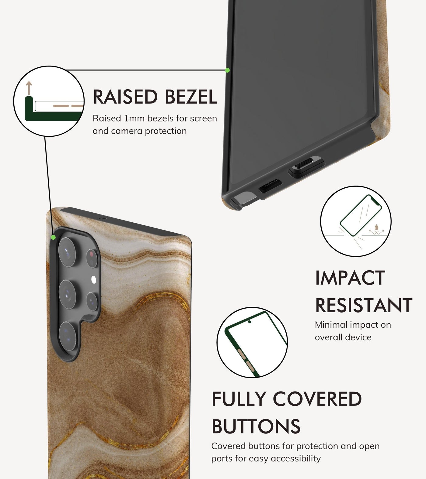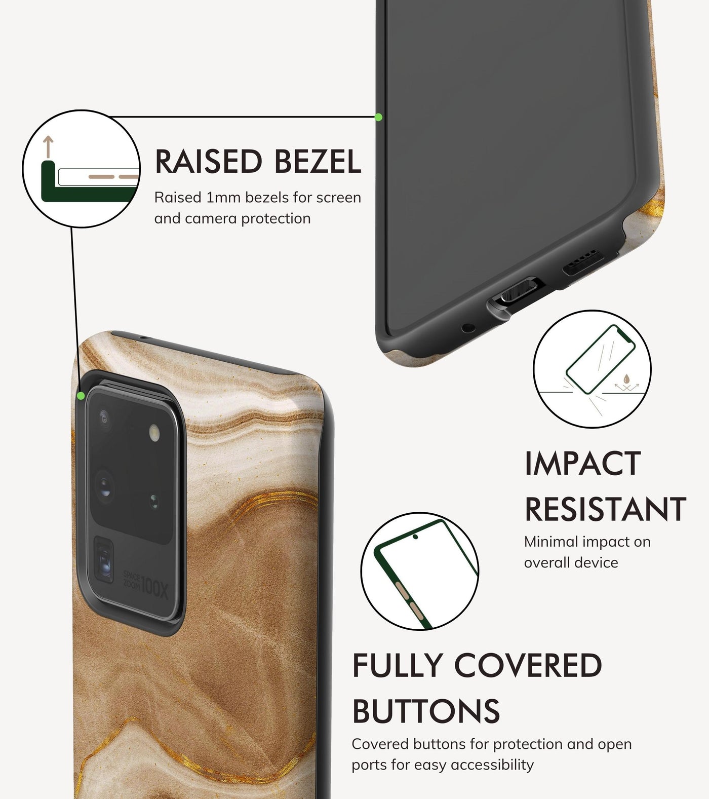 Gold Rush phone case is inspired by the rich and appealing tones of gold agate stones, inviting you to embark on a journey full of excitement and opportunities.