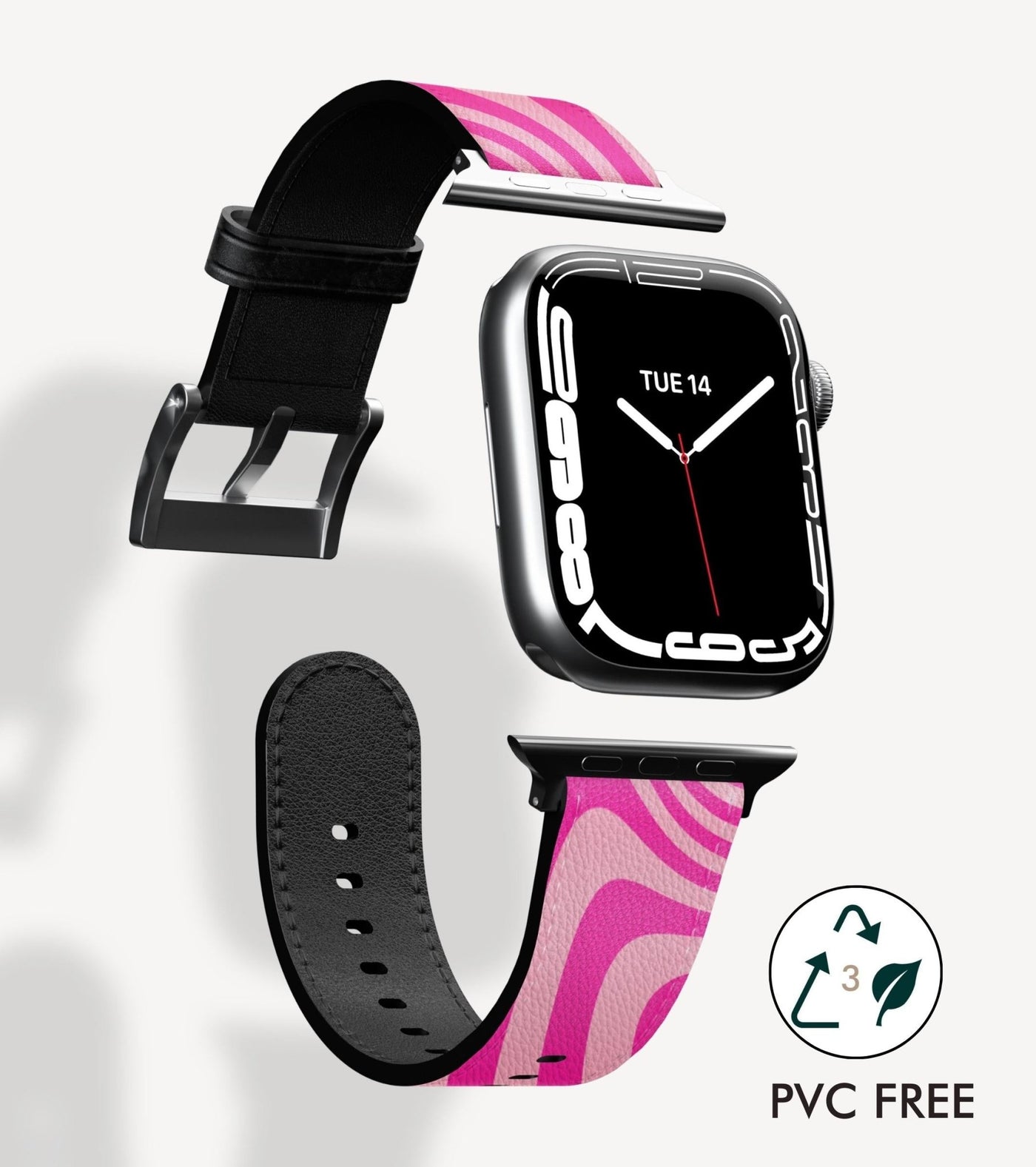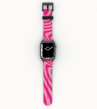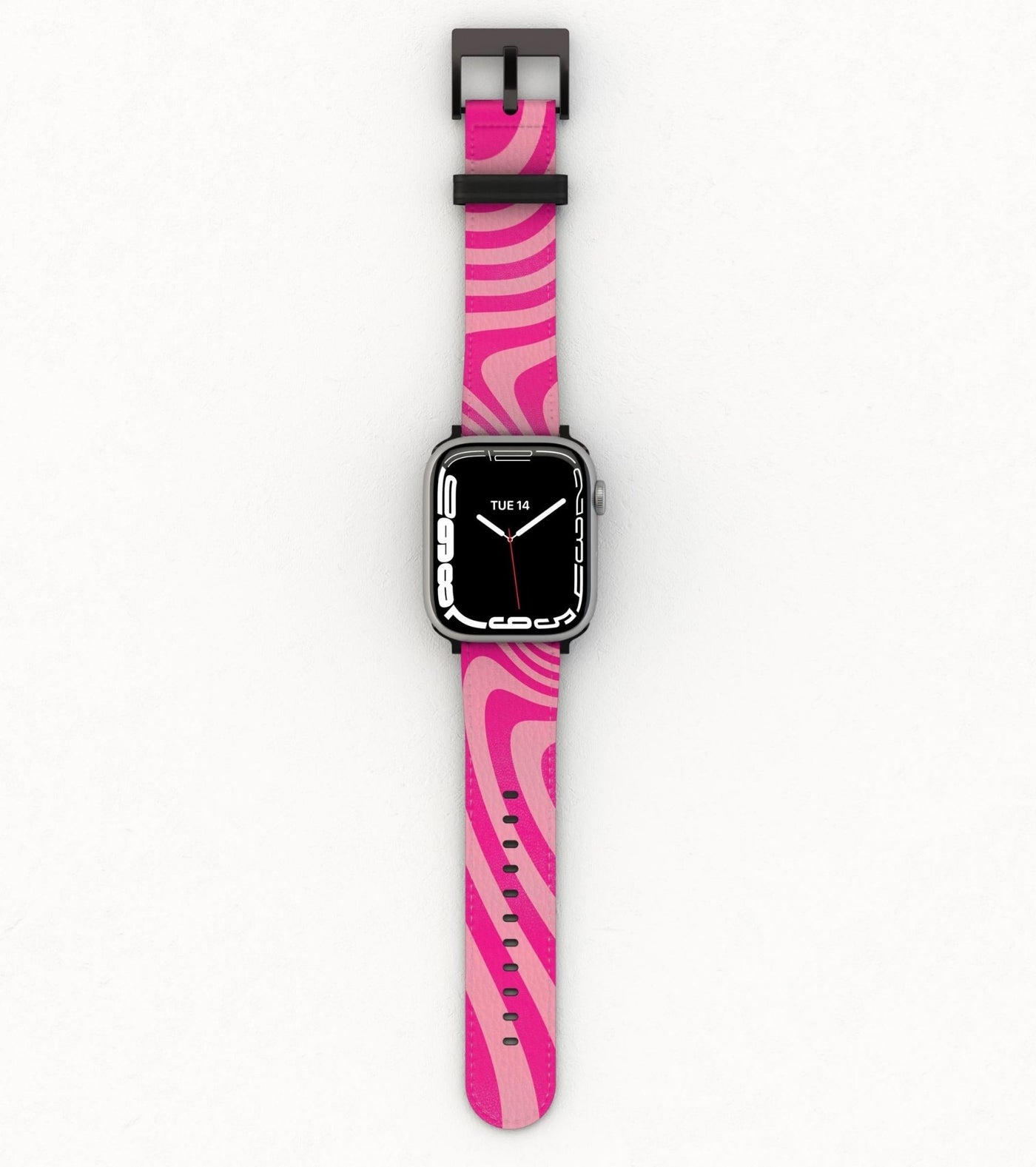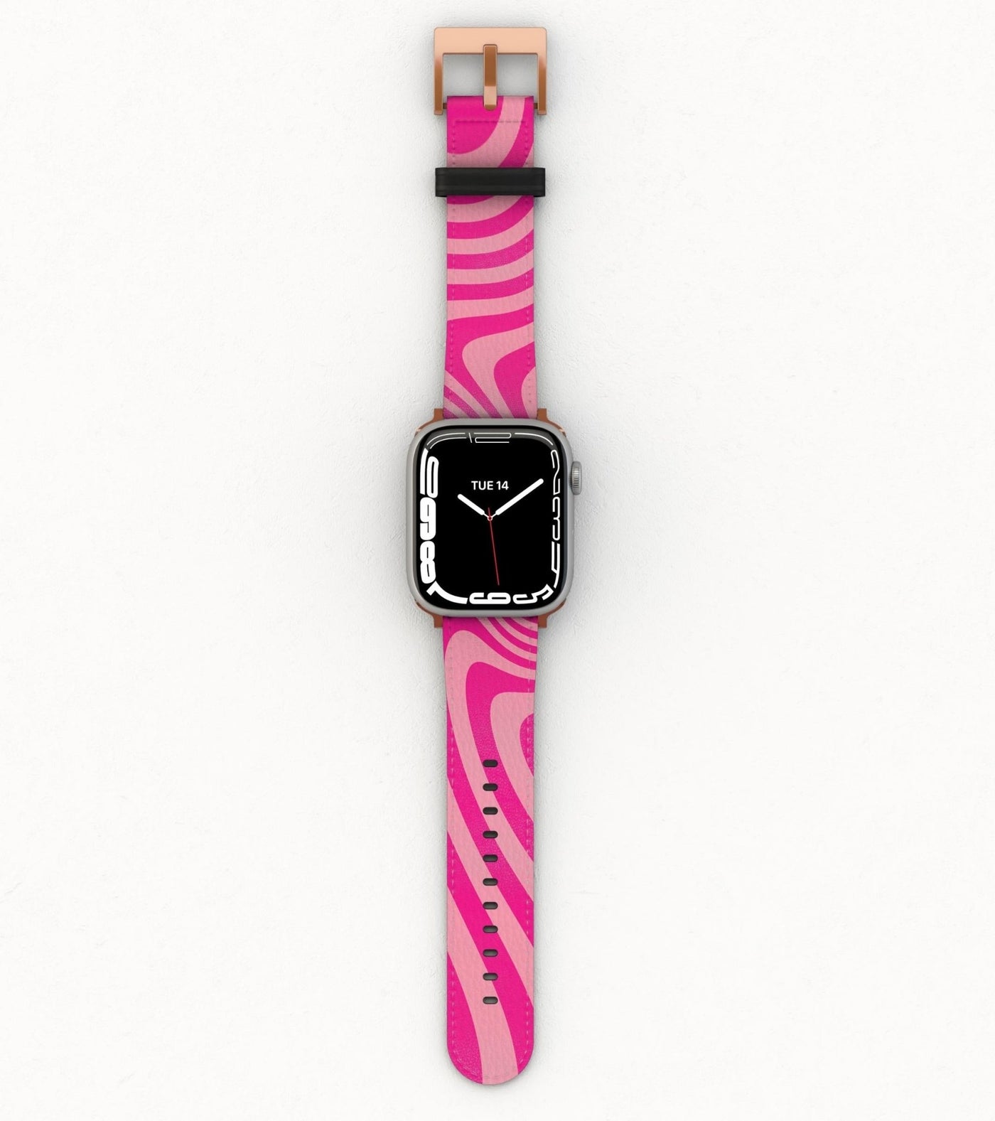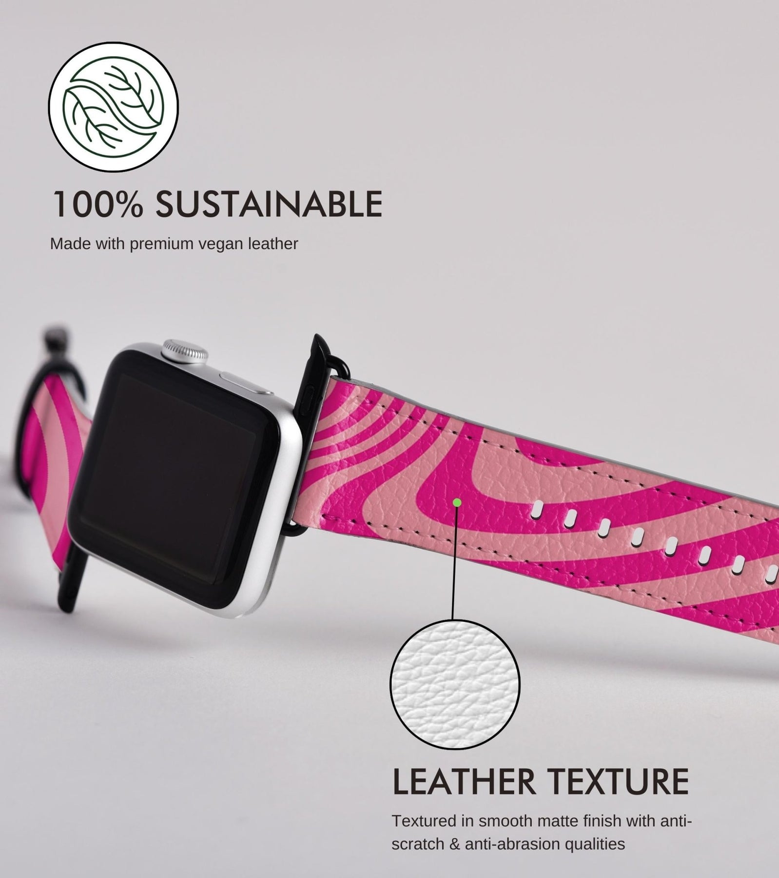 Dive into the glam with the Glam Rock Swirl Apple Watch Band. Vibrant hot pink swirls make a stylish statement, while sustainable vegan leather promises premium comfort.