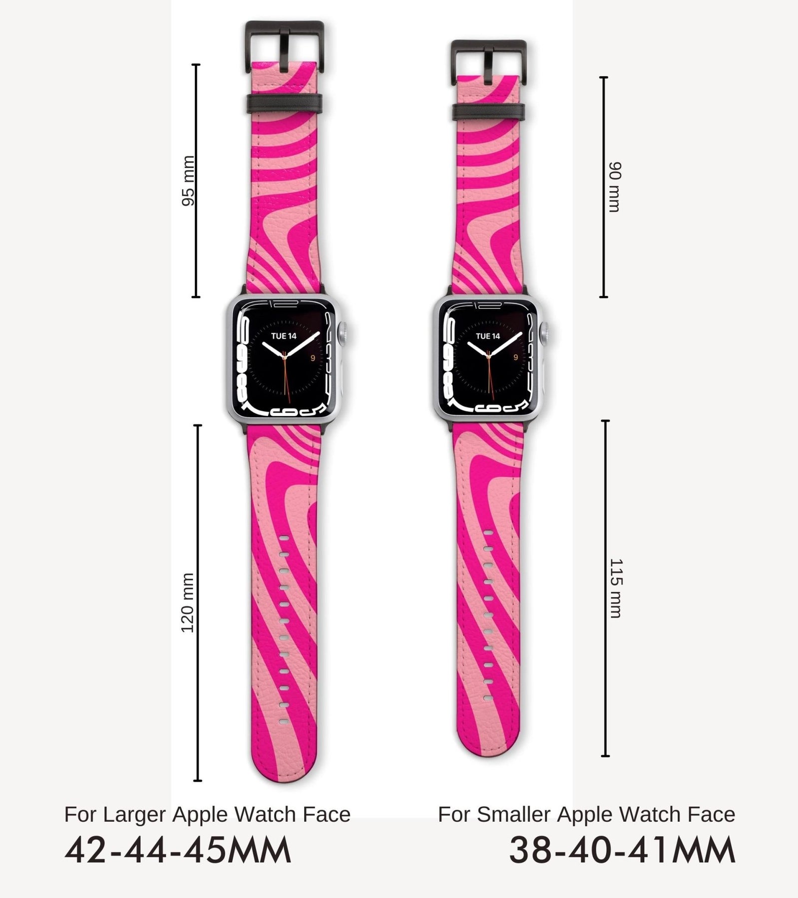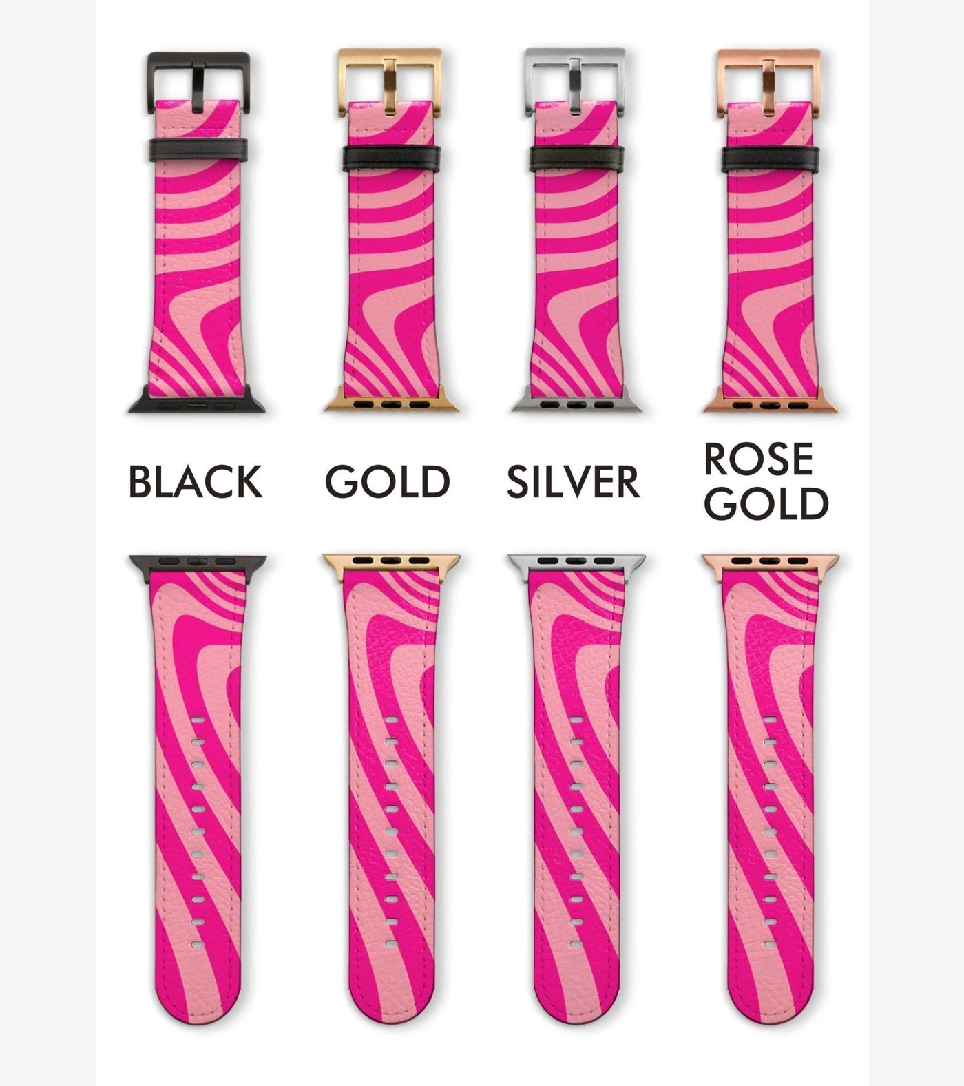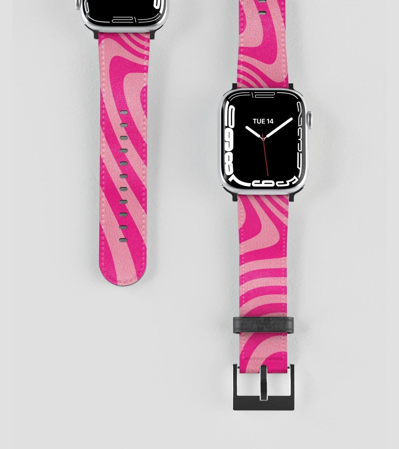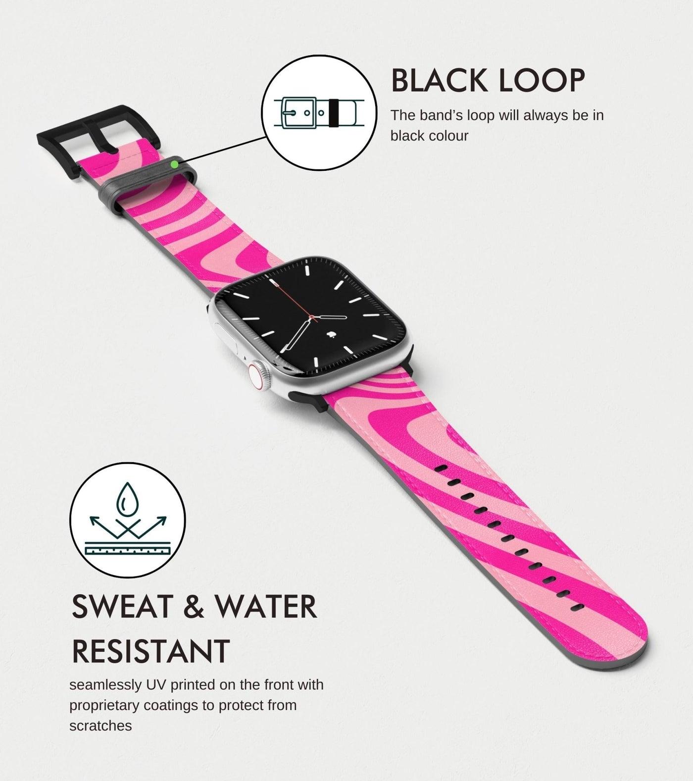 Dive into the glam with the Glam Rock Swirl Apple Watch Band. Vibrant hot pink swirls make a stylish statement, while sustainable vegan leather promises premium comfort.