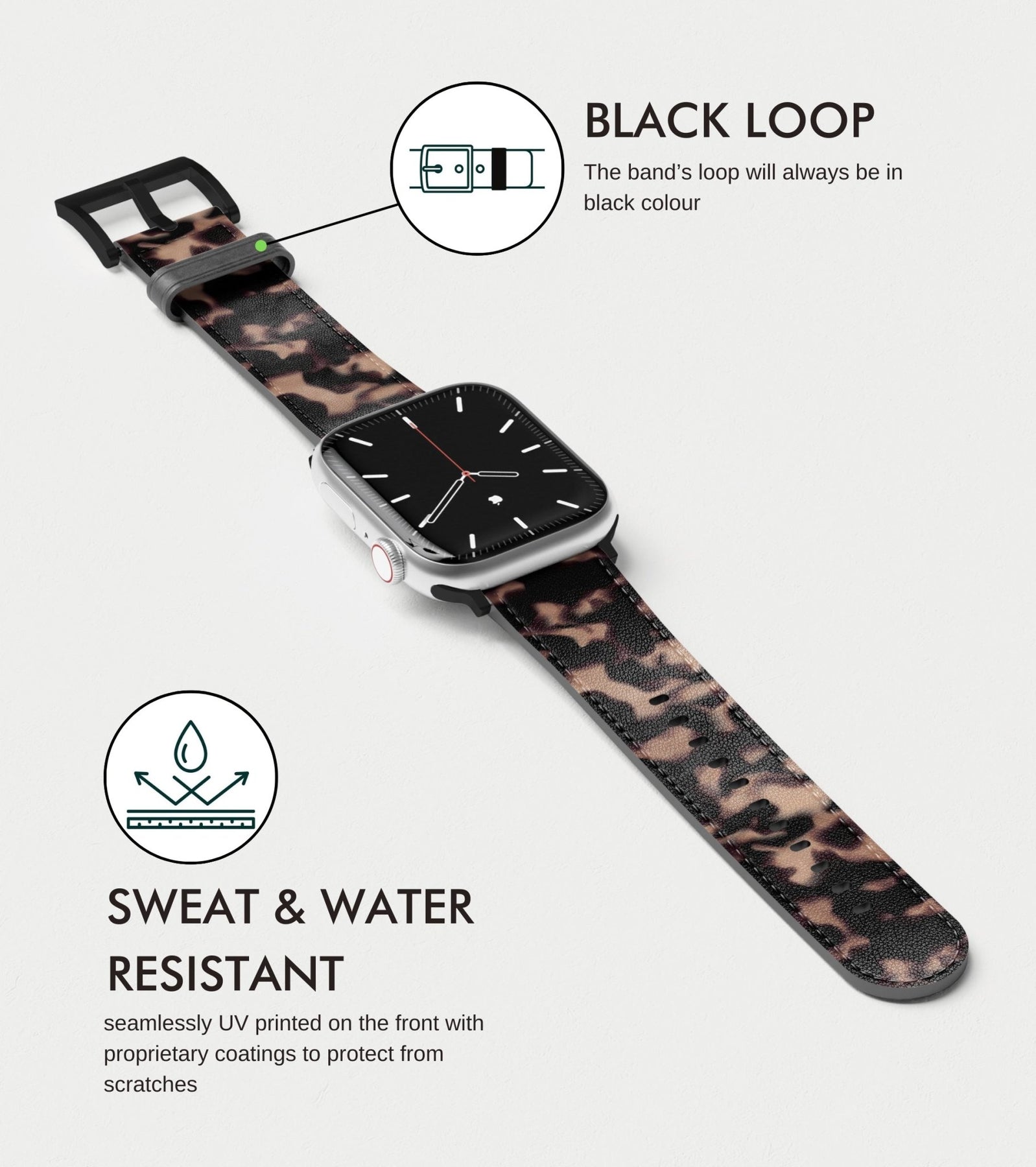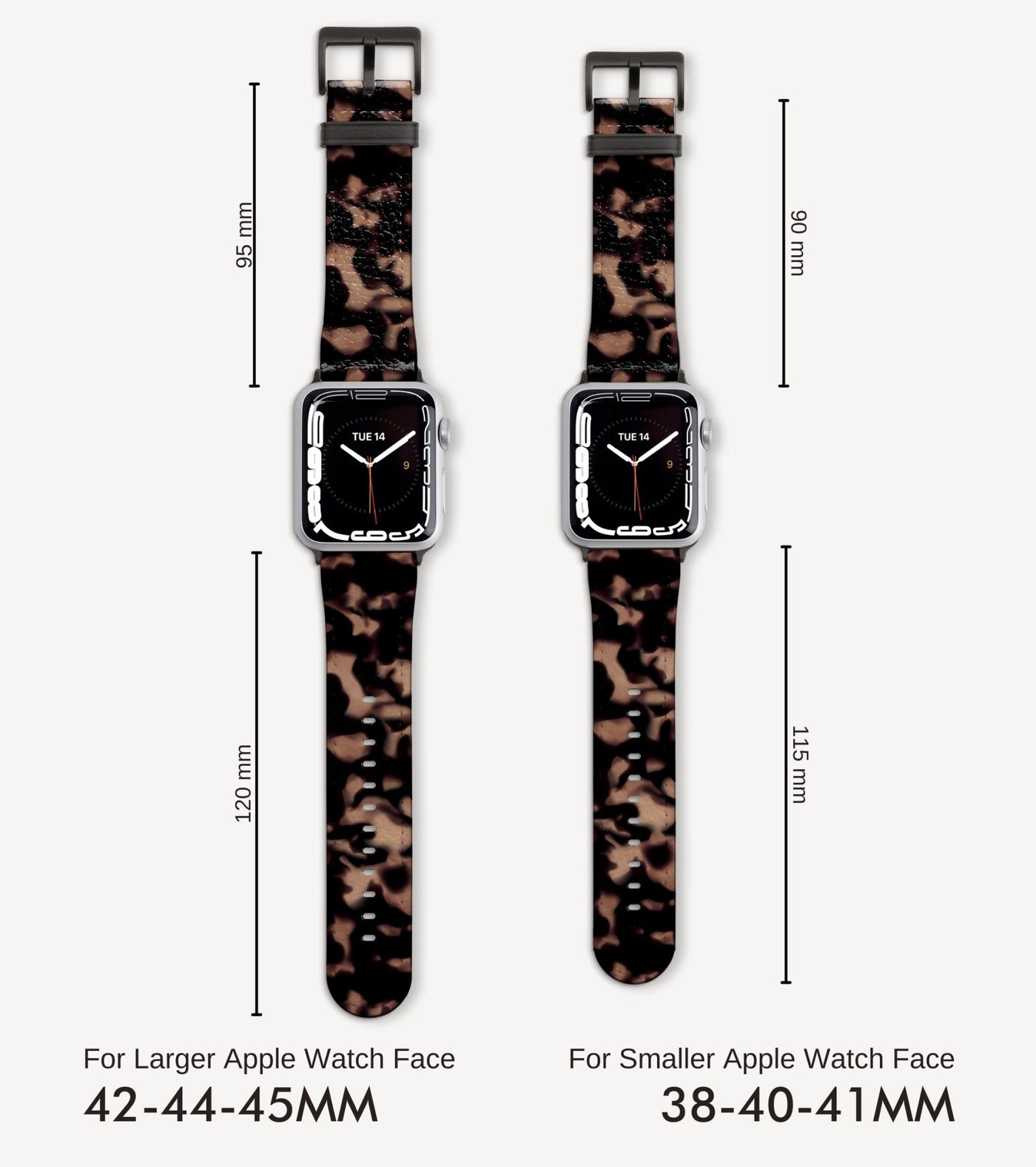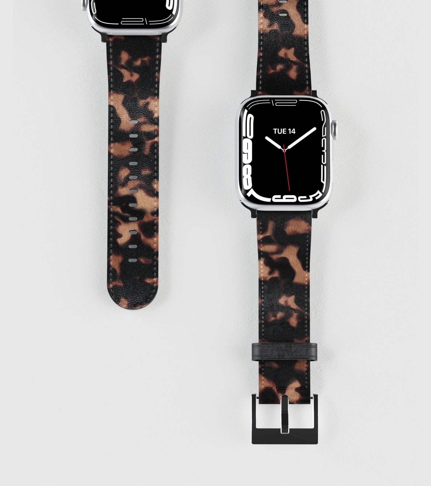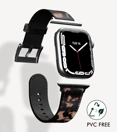 Whereas our vegan leather Apple watchbands are printed using a special cold UV Printing technique which results in subtle matte leather finish.