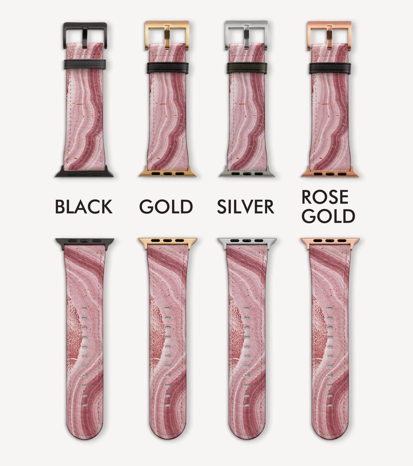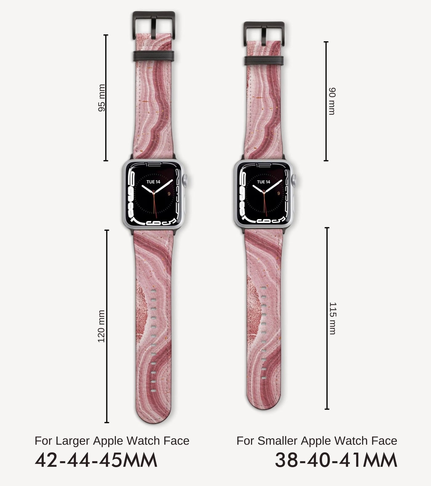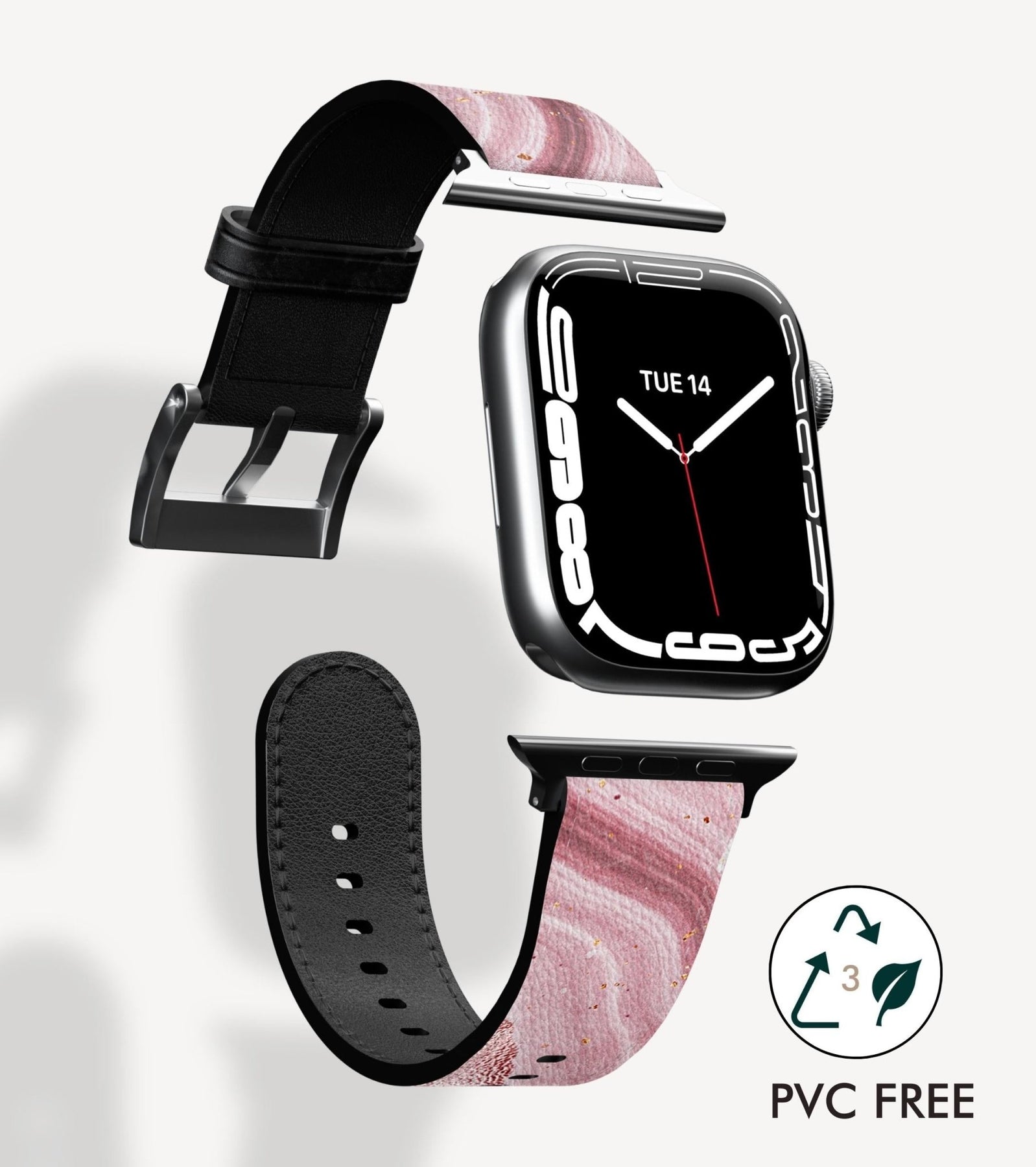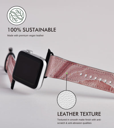 Whereas our vegan leather Apple watchbands are printed using a special cold UV Printing technique which results in subtle matte leather finish.