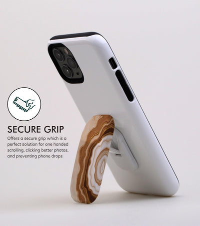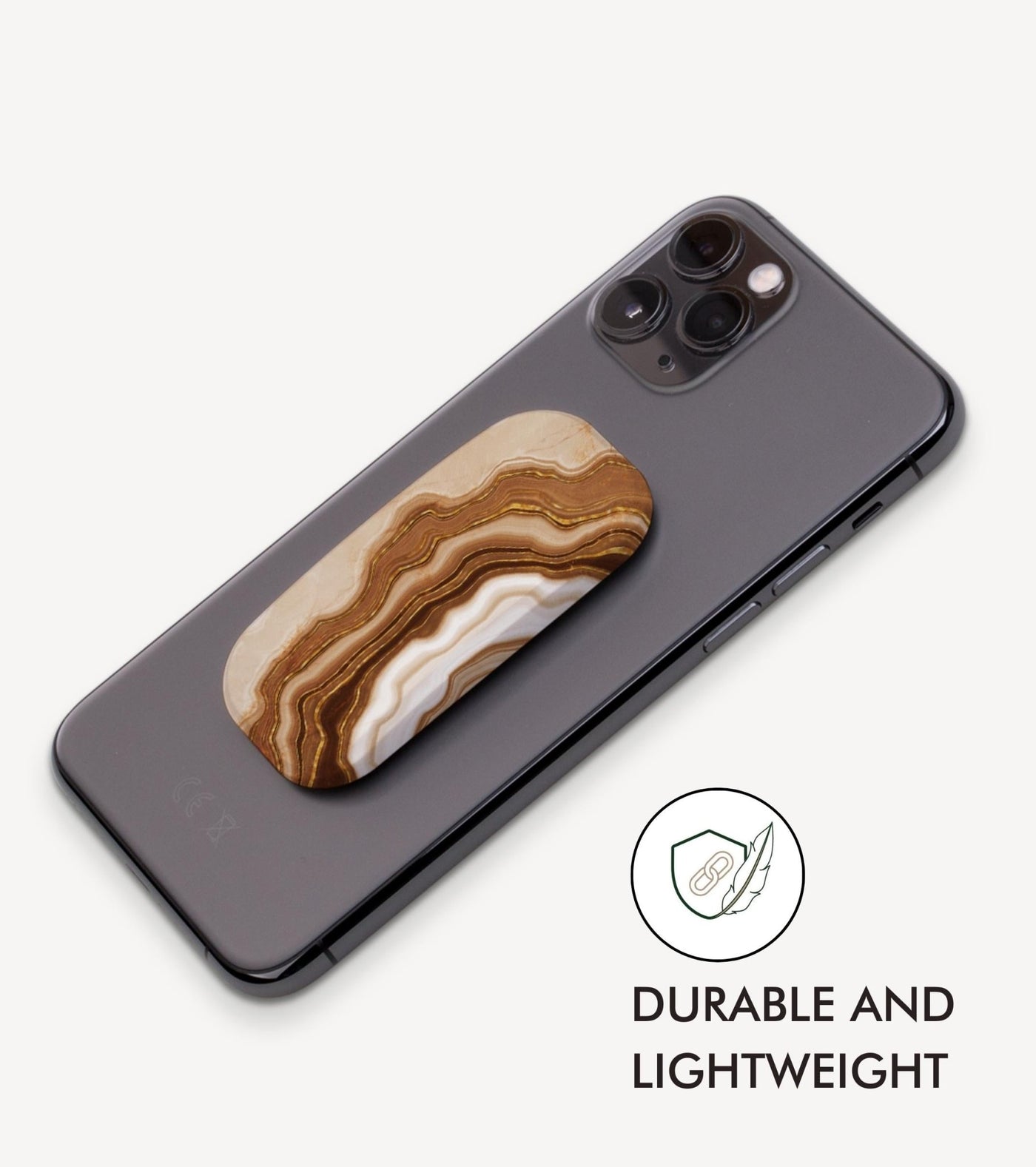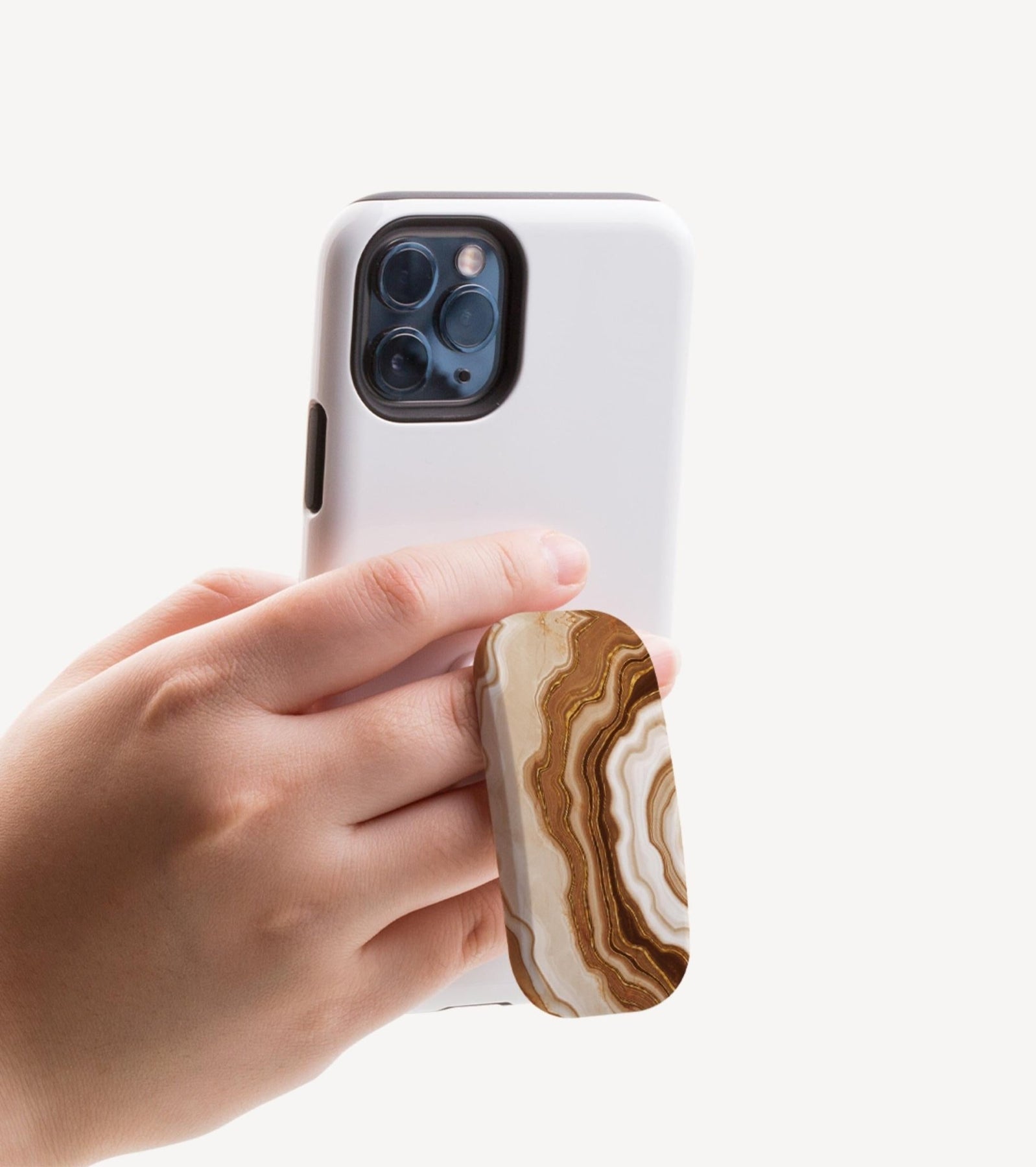 This classic phone grip is the perfect blend of protection and luxury. It takes inspiration from the warm, radiant tones of gold-hued agate stones. It symbolizes the boundless opportunities and abundance that life has to offer.