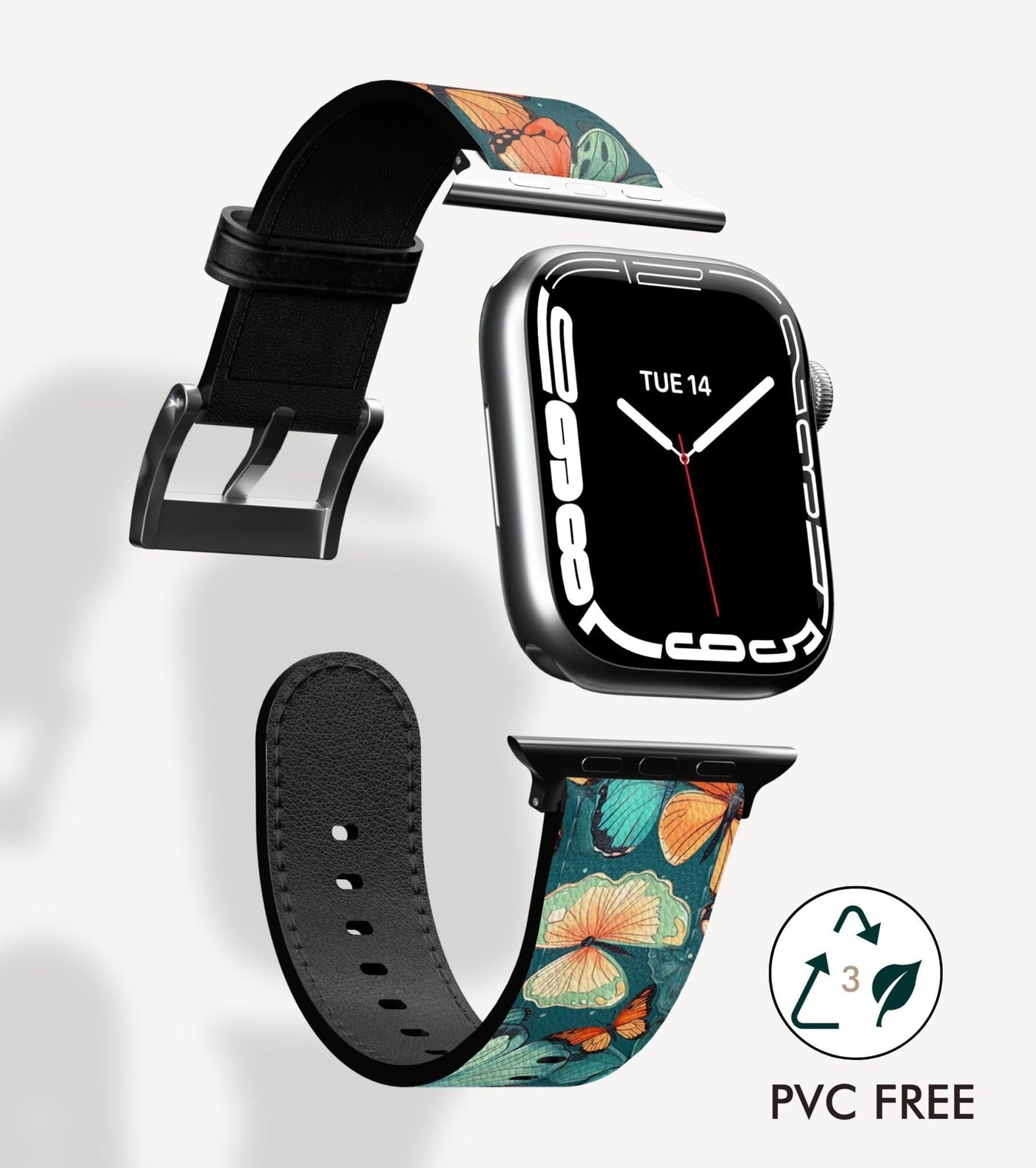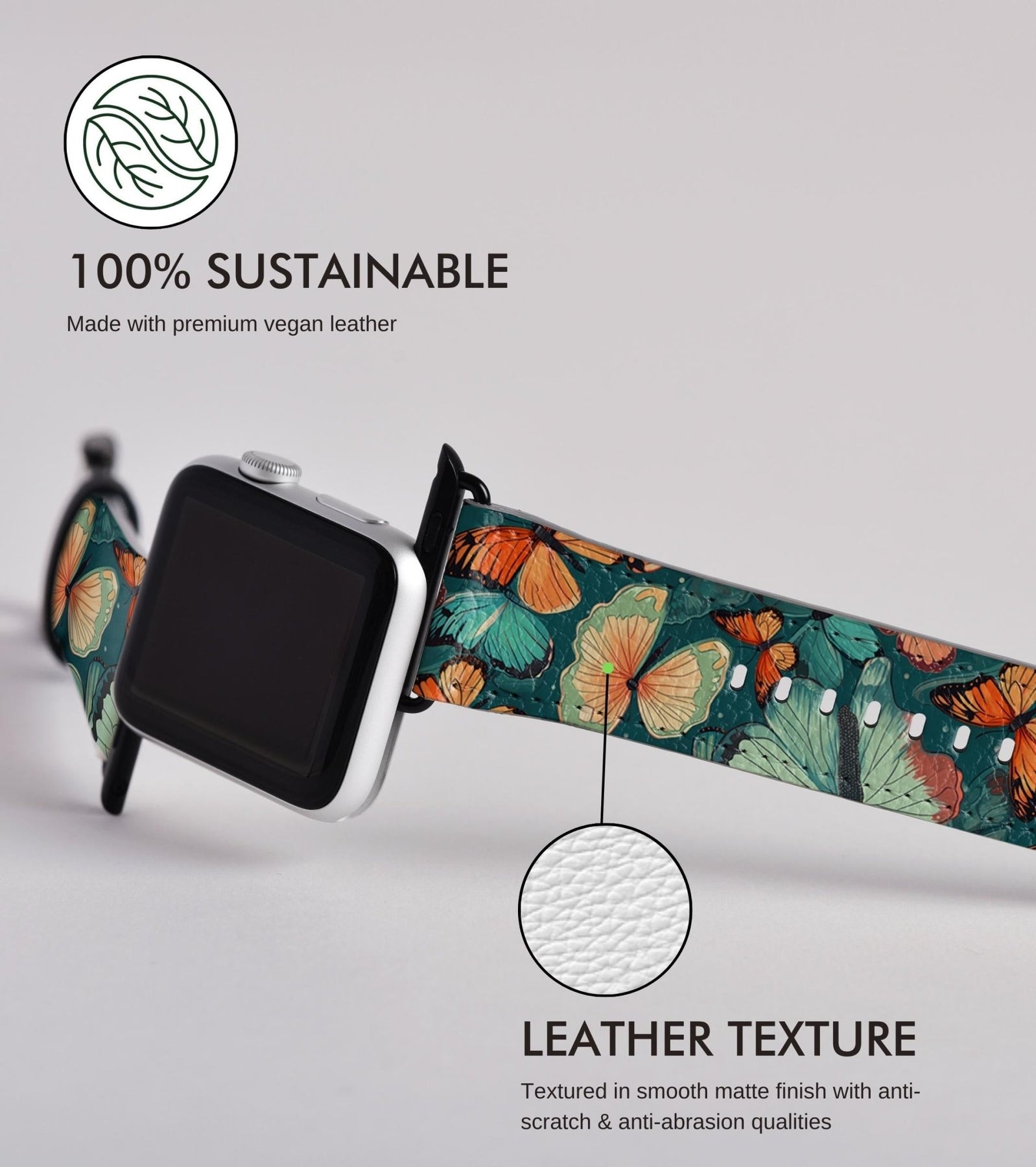 Made from 100% sustainable vegan leather, it's not just a fashion statement, but a commitment to the environment. Compatible with all Apple Watch series, it's as adaptable as the butterfly it's inspired by.