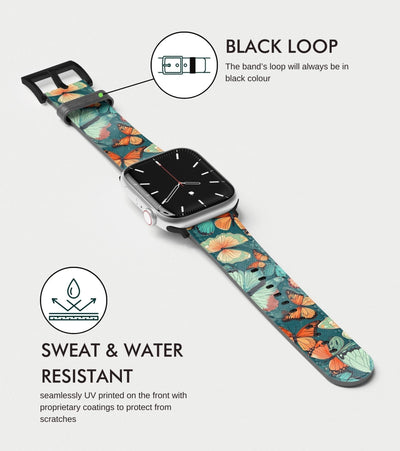 Transform your style with our Butterfly Print Apple Watch Band. Just like a butterfly emerging from its cocoon, this band symbolizes beauty and transformation with a reminder that change can be a beautiful thing.
