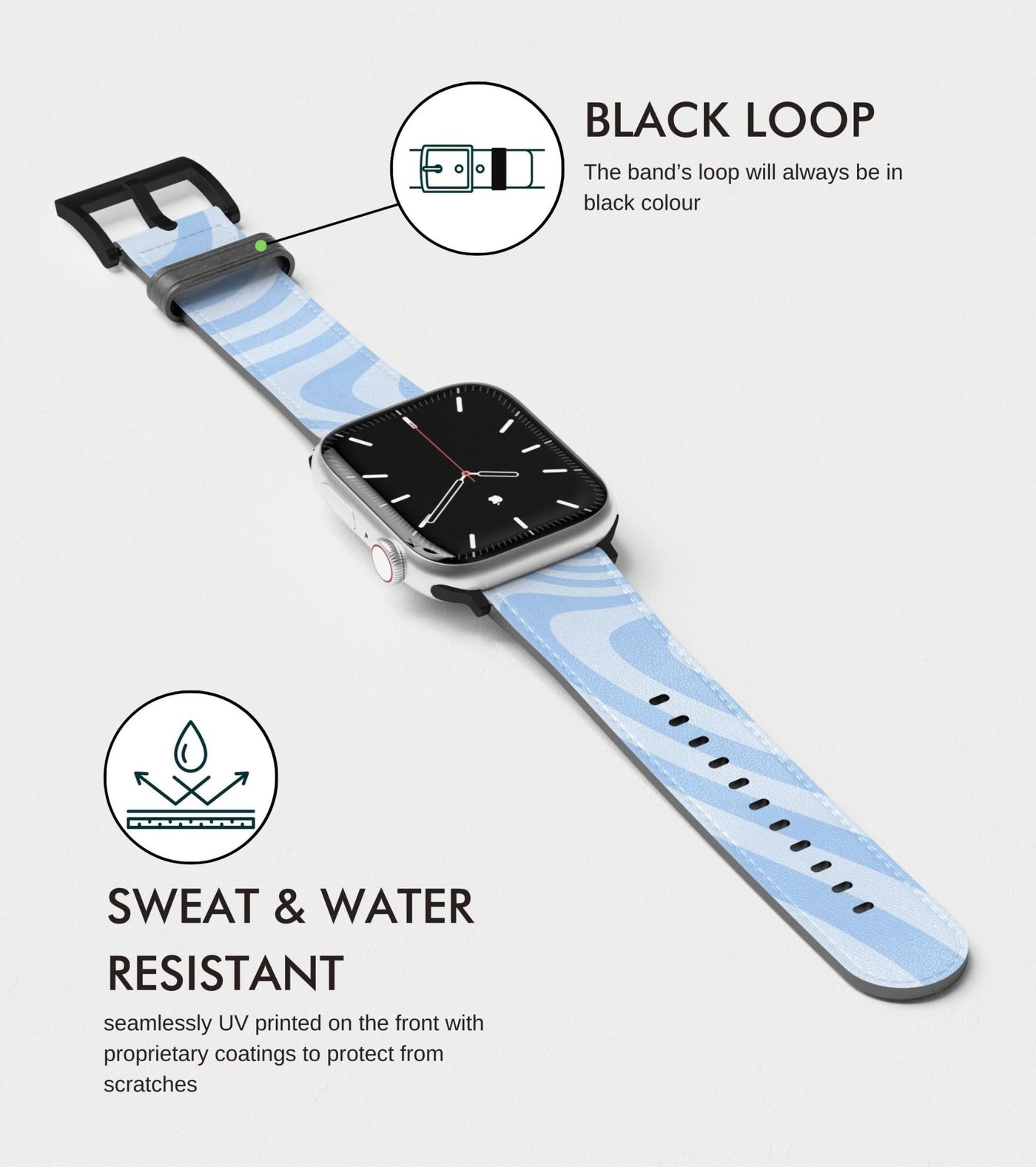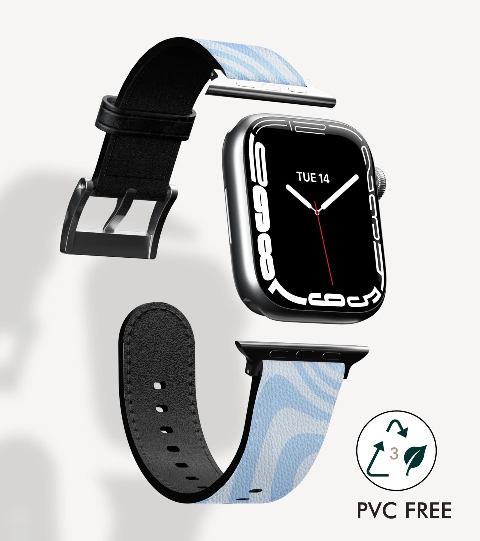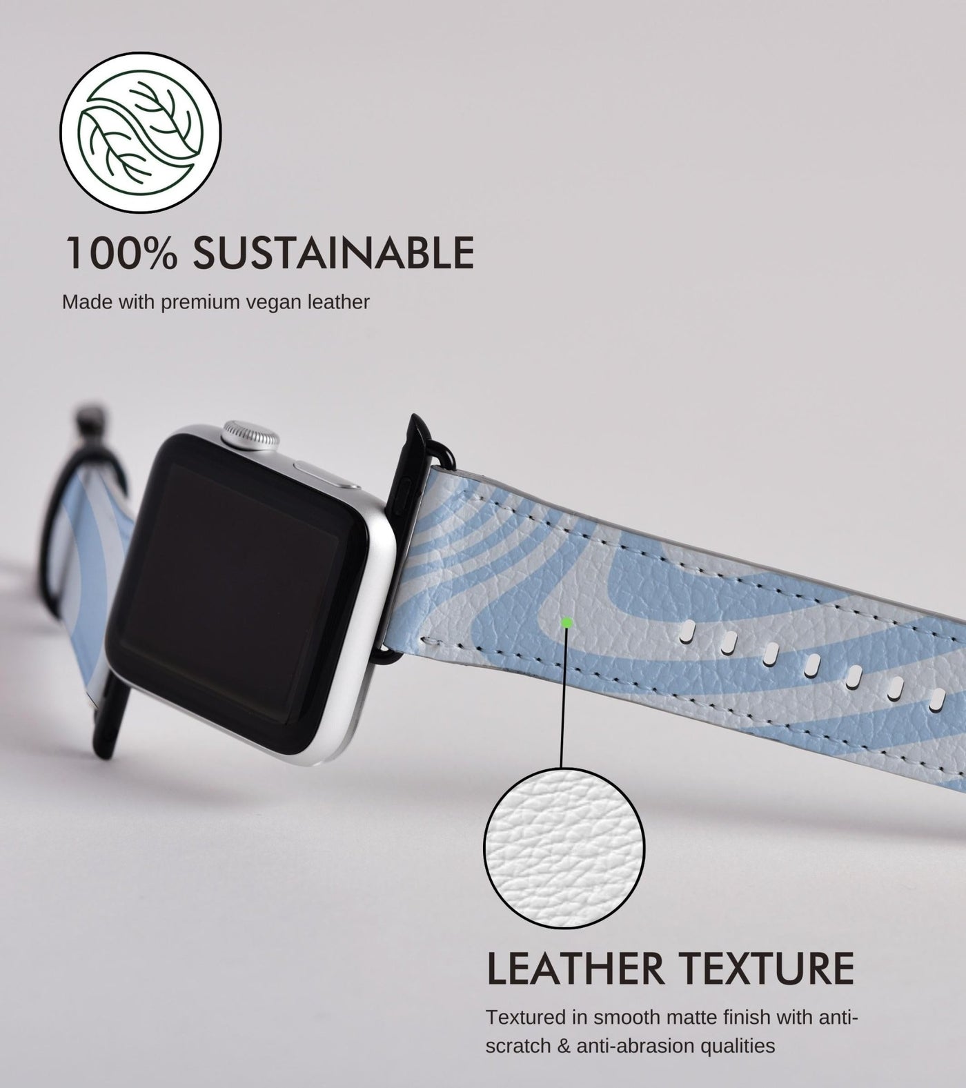 Elevate your style with the Skyline Swirl Apple Watch Band. Featuring mesmerizing sky blue abstract swirls, this band melds style with sustainability.