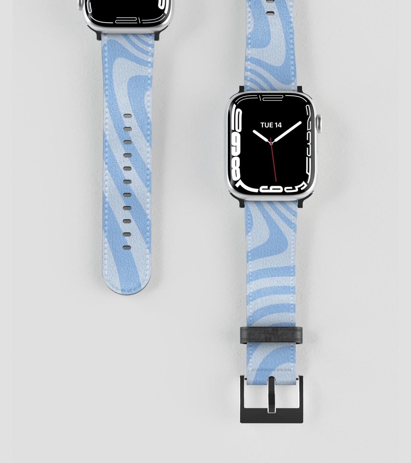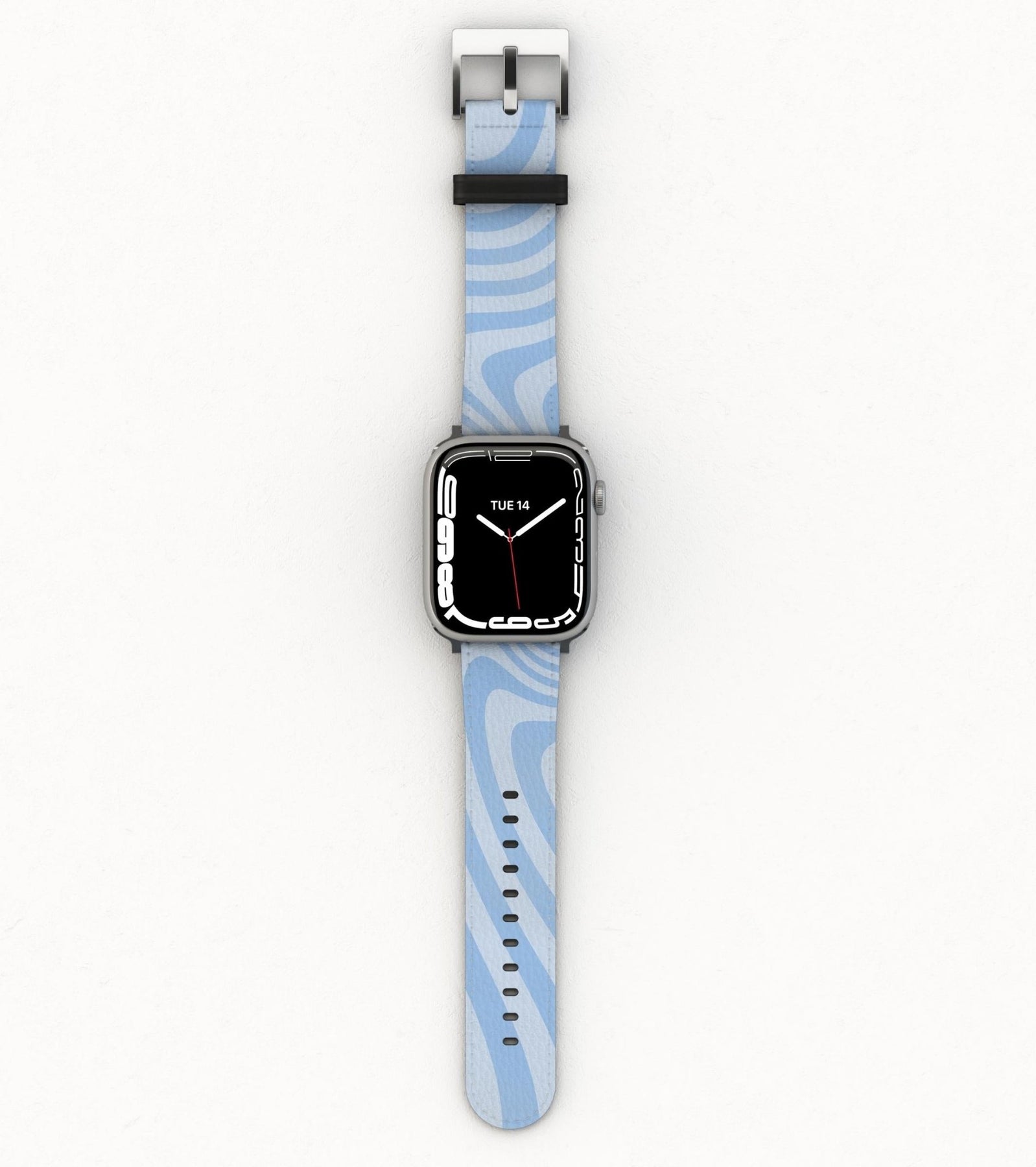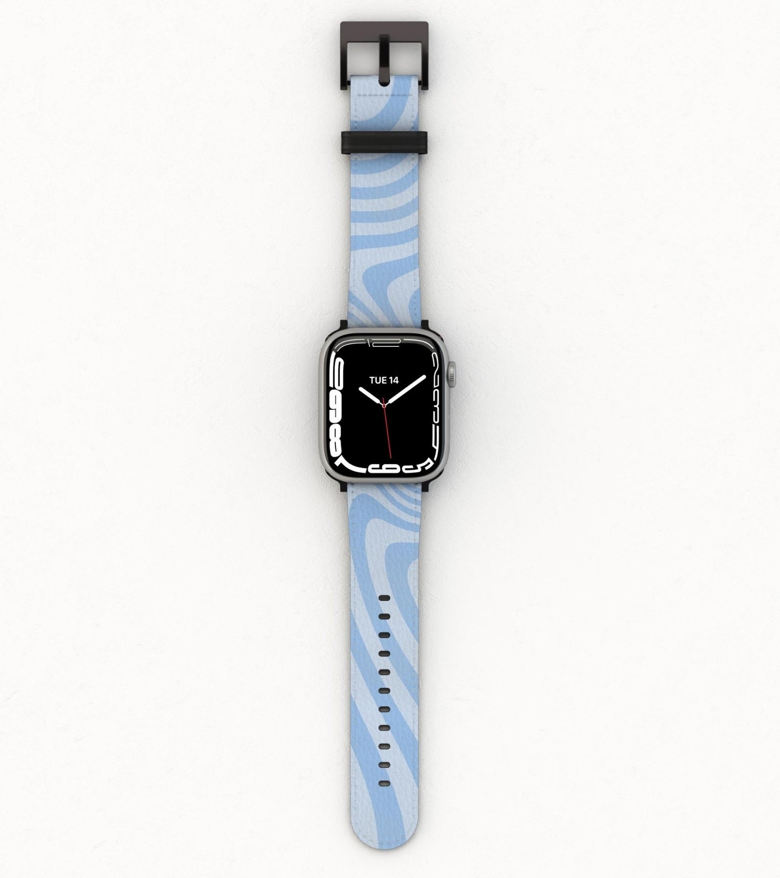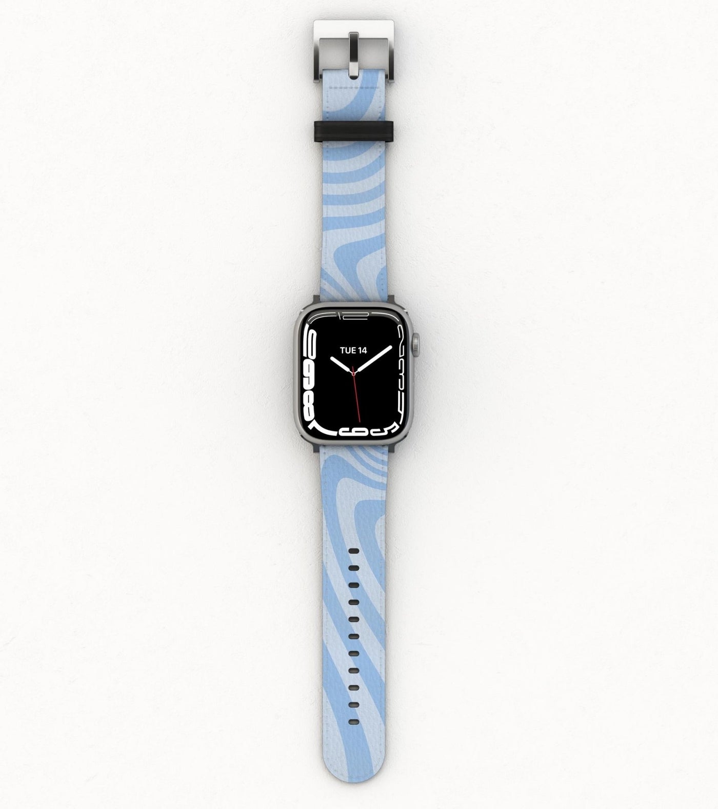Elevate your style with the Skyline Swirl Apple Watch Band. Featuring mesmerizing sky blue abstract swirls, this band melds style with sustainability.