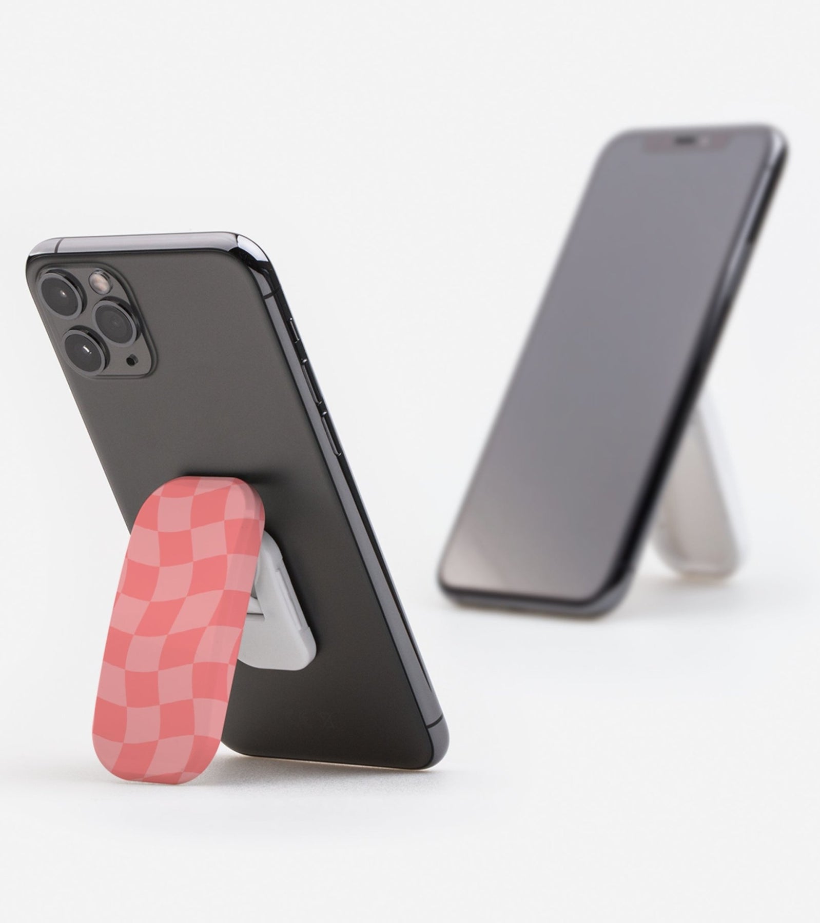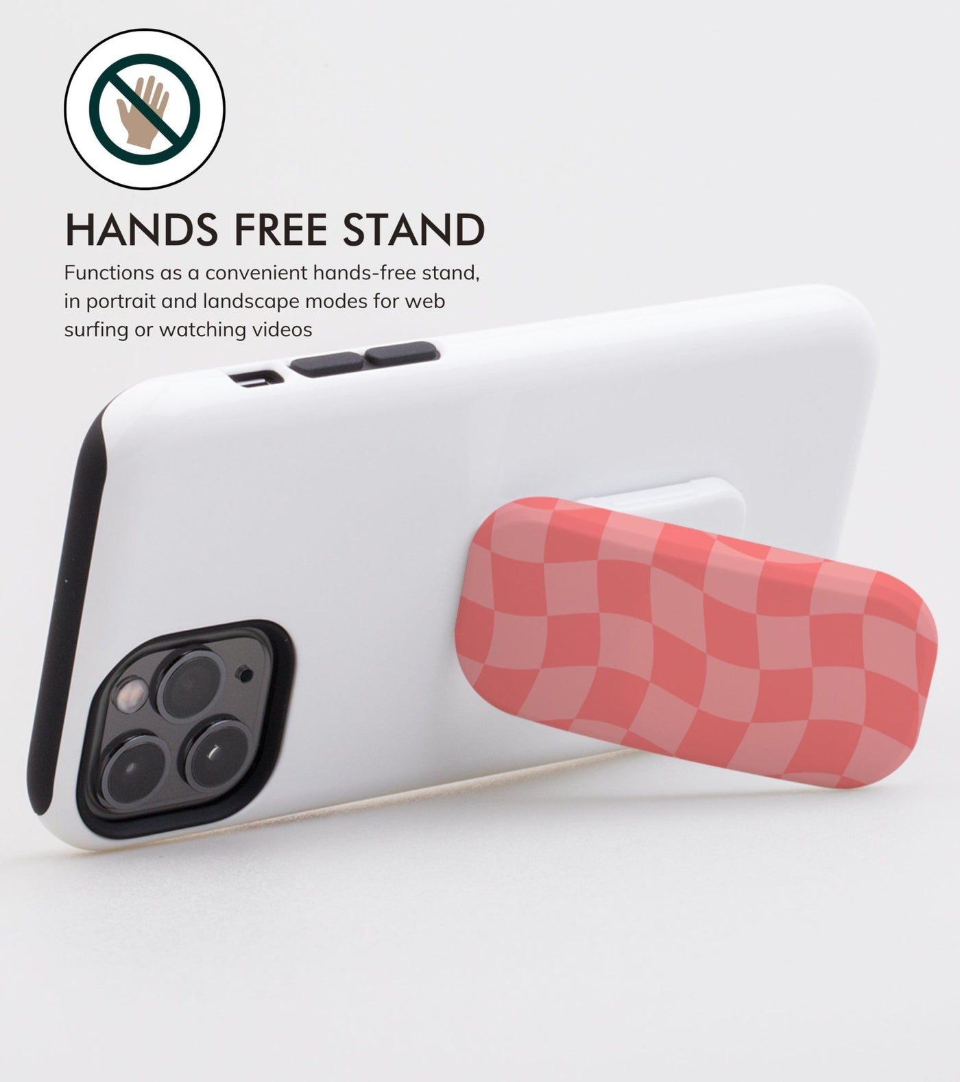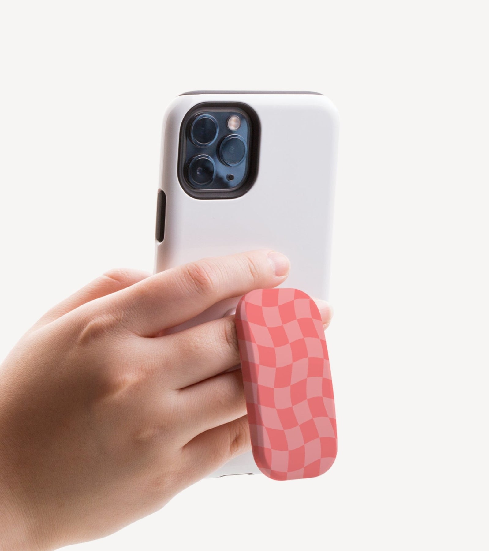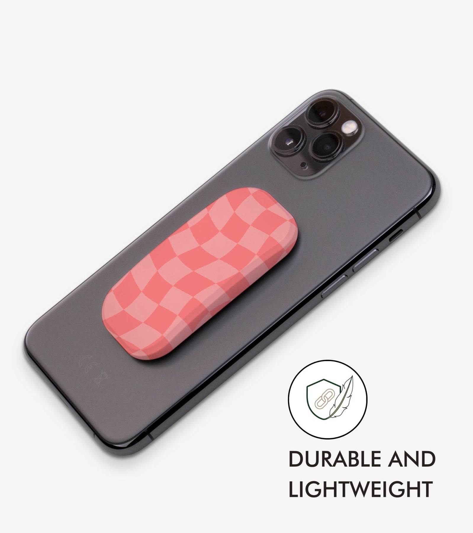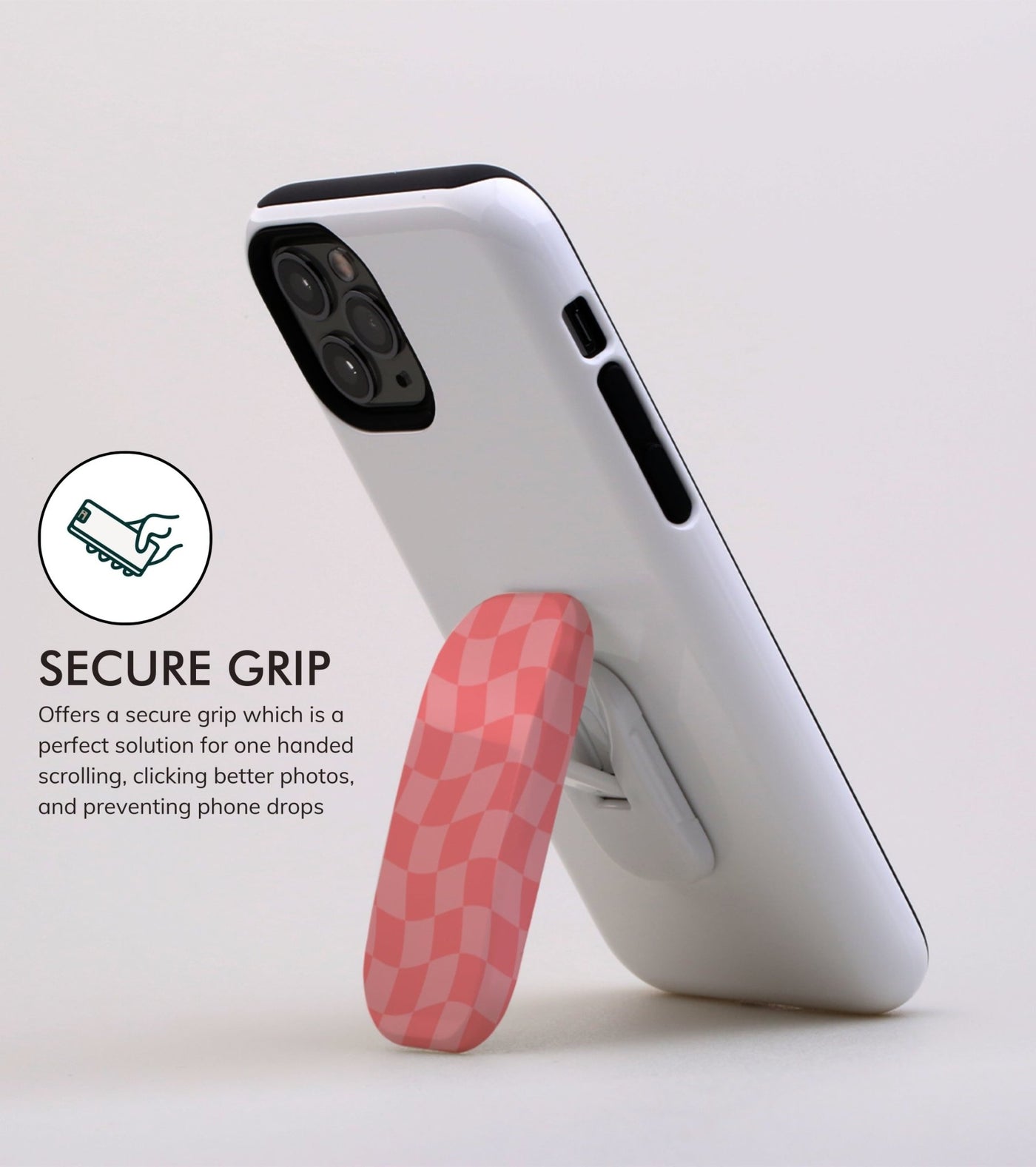 Unleash your playful spirit with our Coral Crush Checkered Phone Grip. The bold coral pink shade is sure to turn heads, while the beautiful wavy checkerboard pattern adds a touch of sophistication.