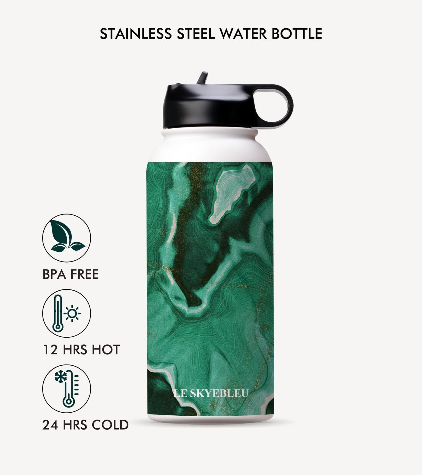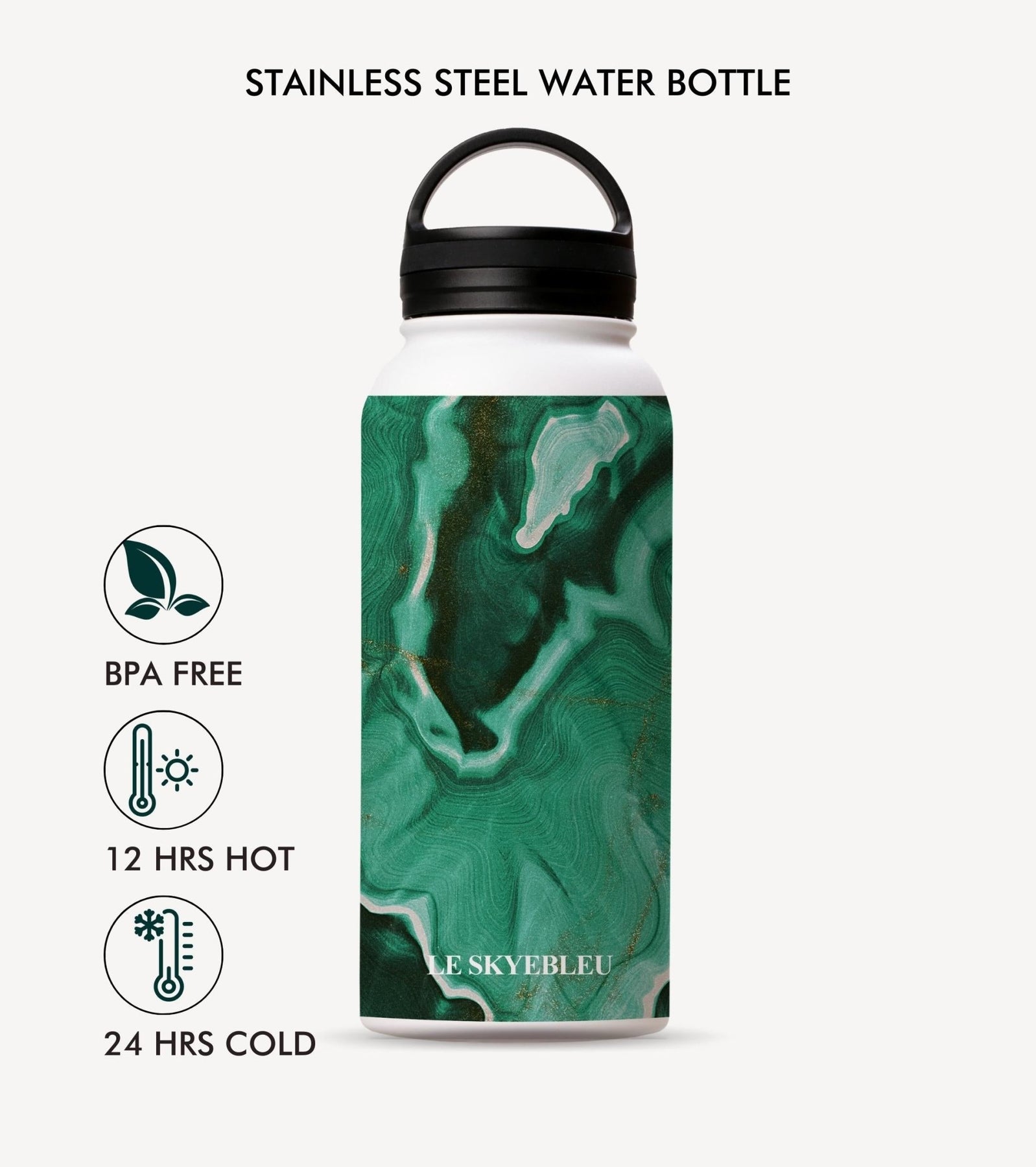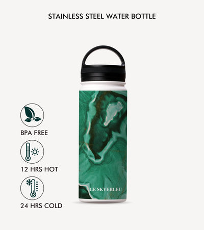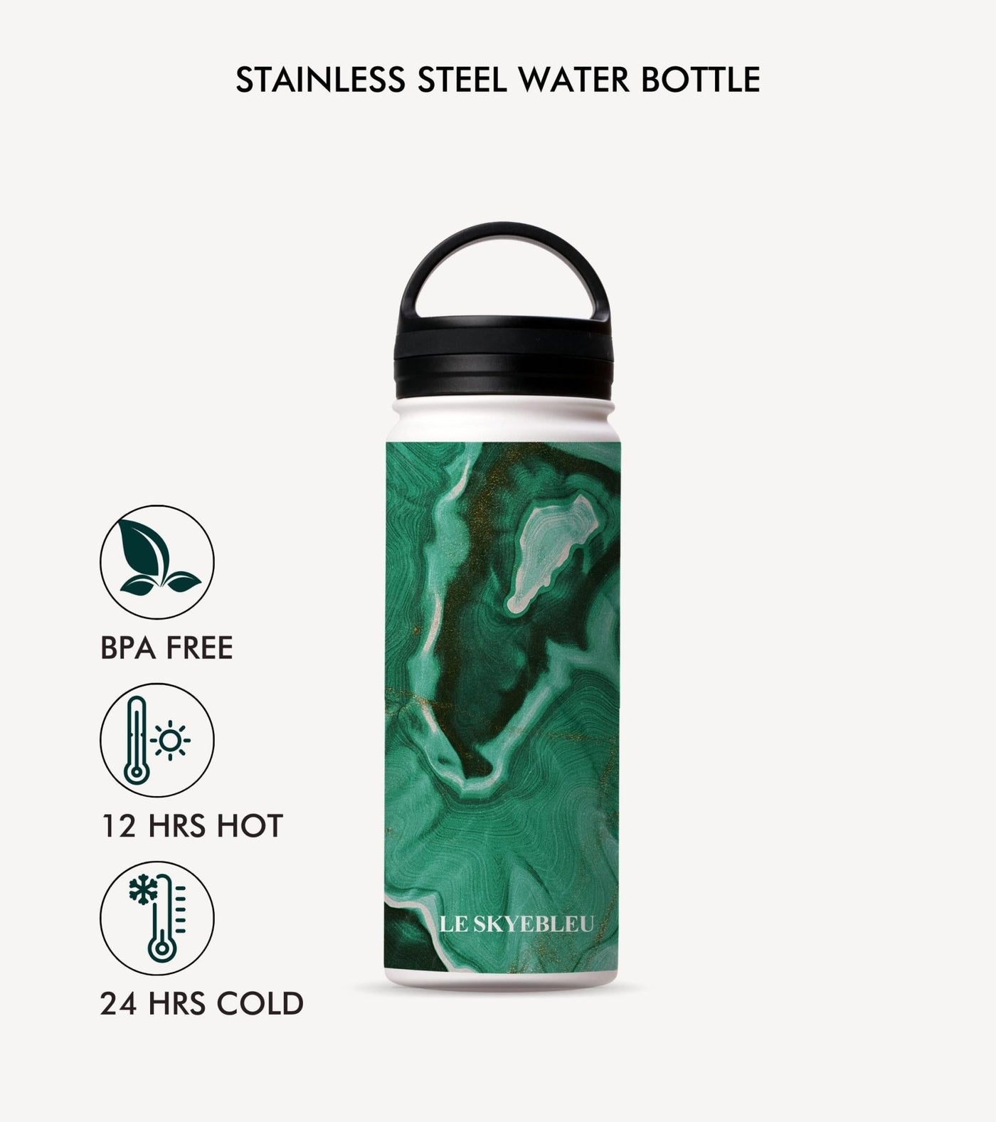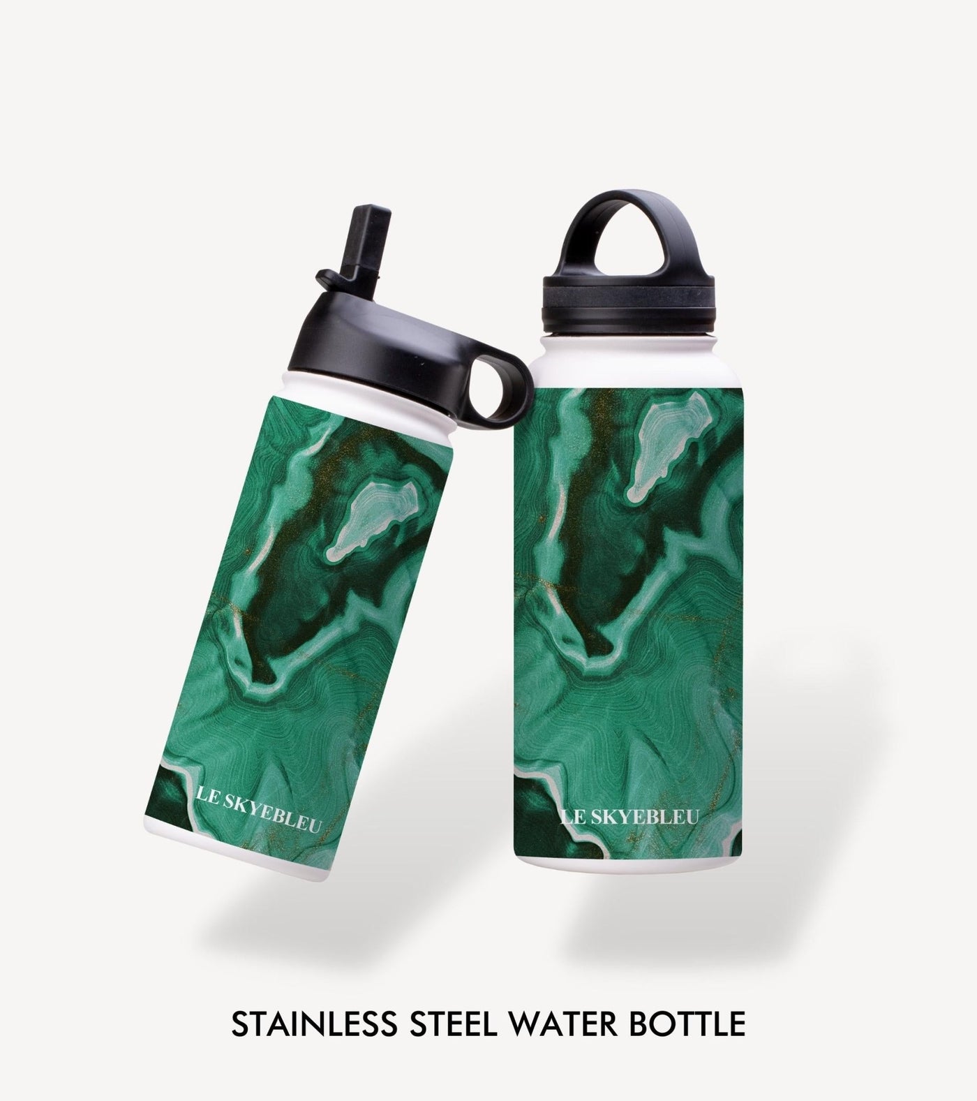 Inspired by the mesmerizing tones of green agate stones, this water bottle transports you to a world of calm and serenity.