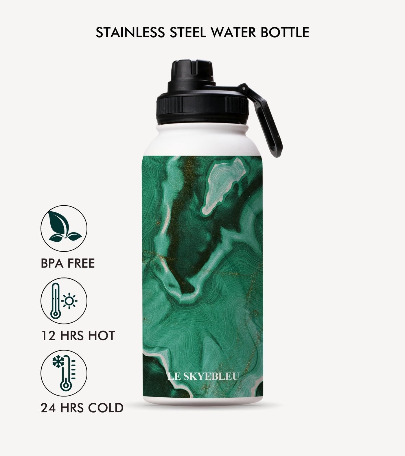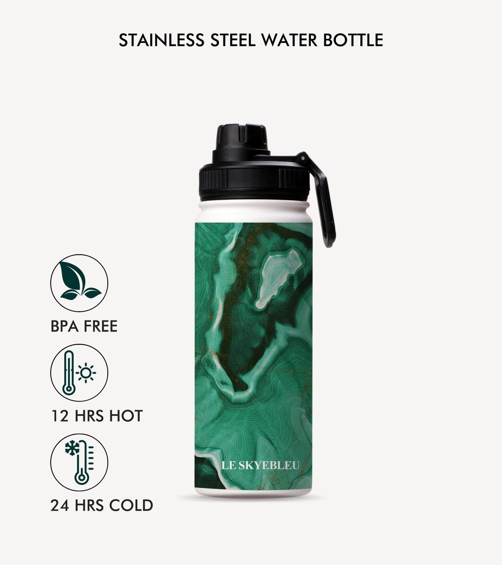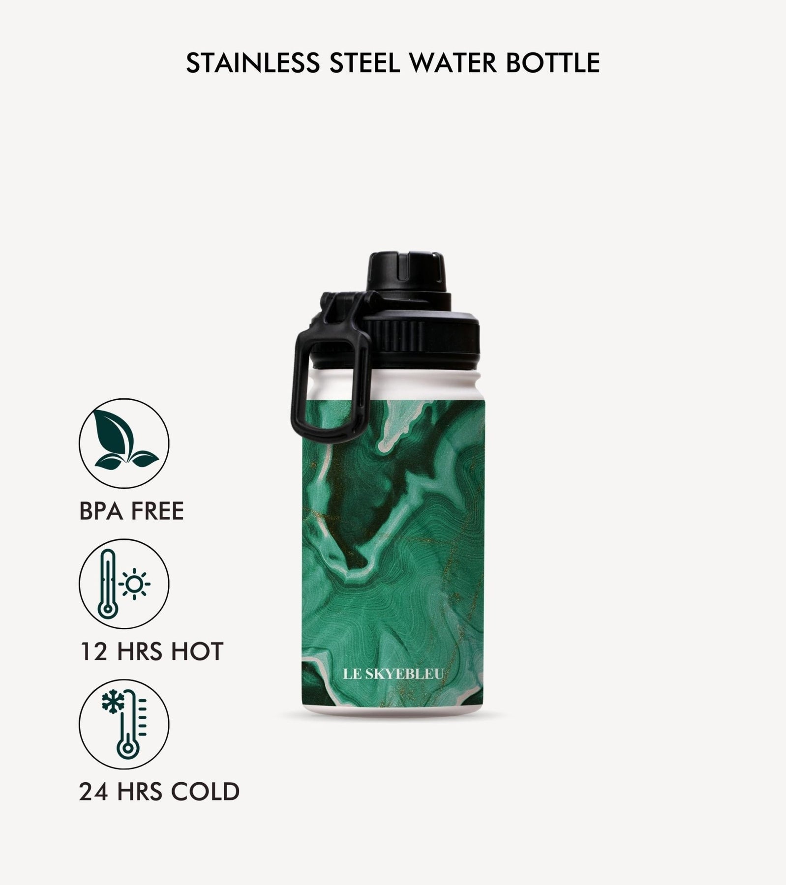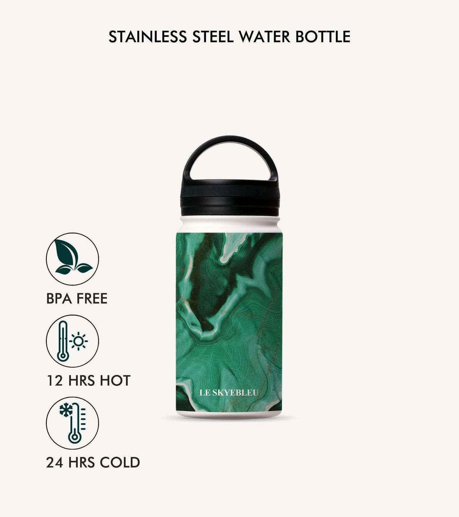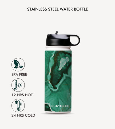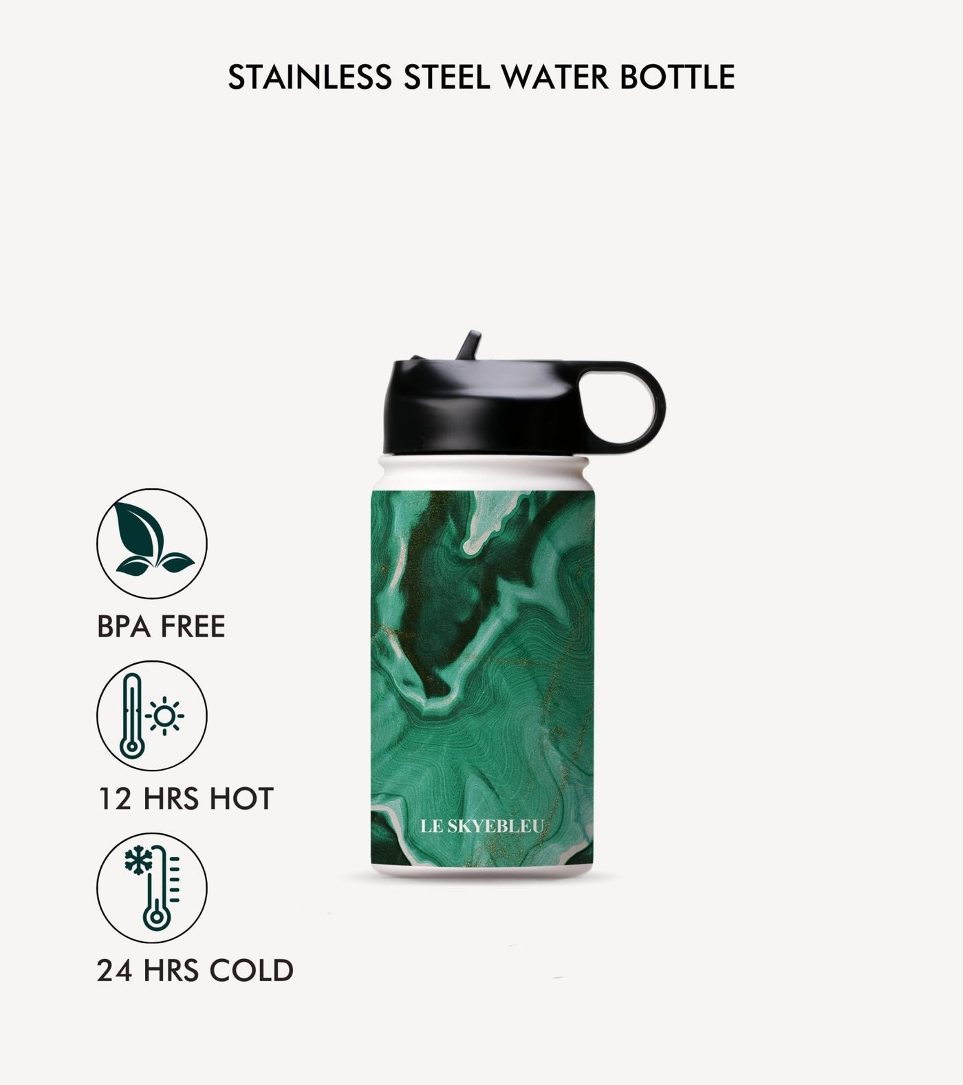 Inspired by the mesmerizing tones of green agate stones, this water bottle transports you to a world of calm and serenity.