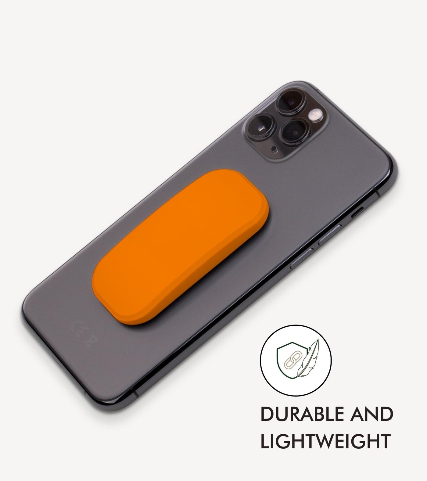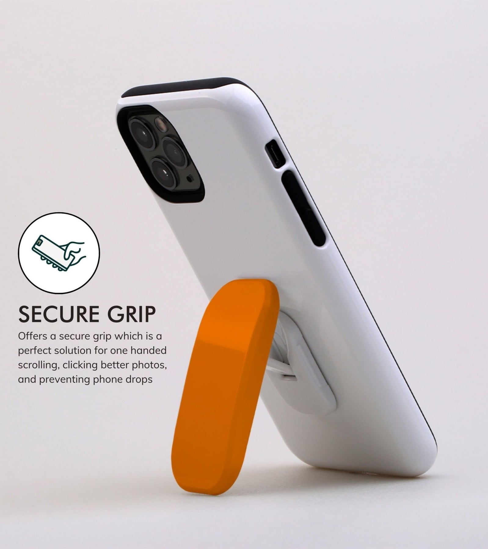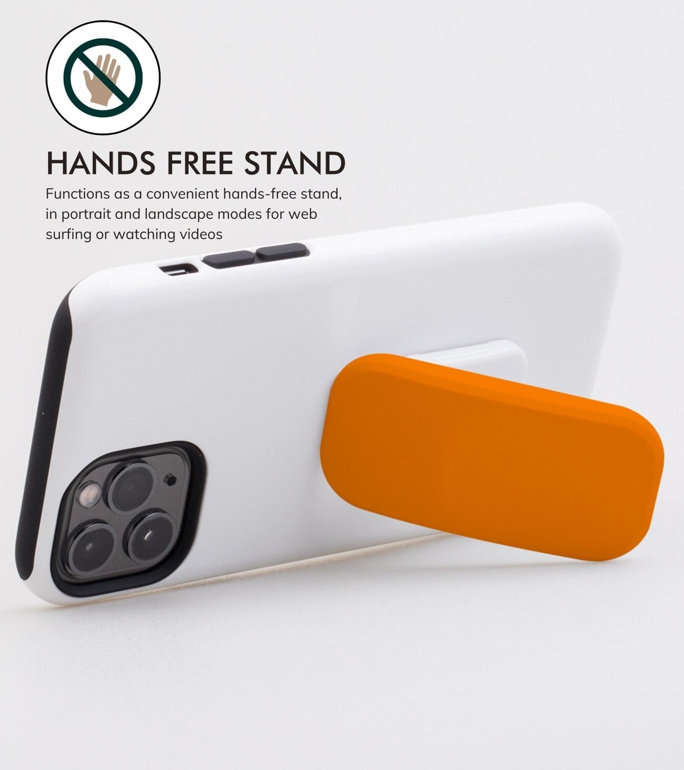 Add a spark of color to your phone and say goodbye to tired hands as this handy Bright Orange Phone Grip is a perfect all in one solution for one handed scrolling, clicking better photos including trouble free selfies, and preventing phone drops, while reducing strain on your fingers and wrists.
