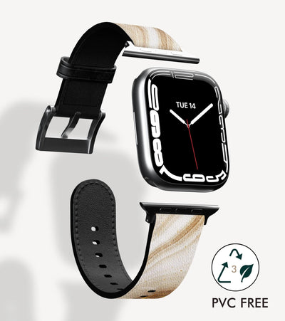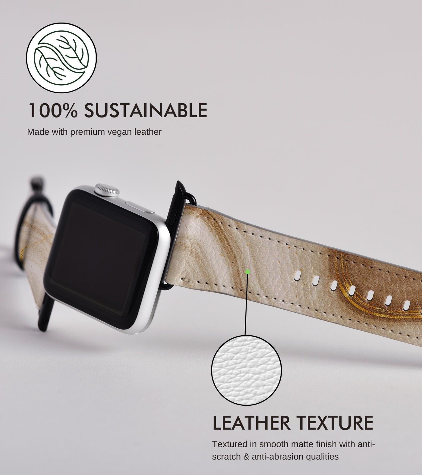 Whereas our vegan leather Apple watchbands are printed using a special cold UV Printing technique which results in subtle matte leather finish.