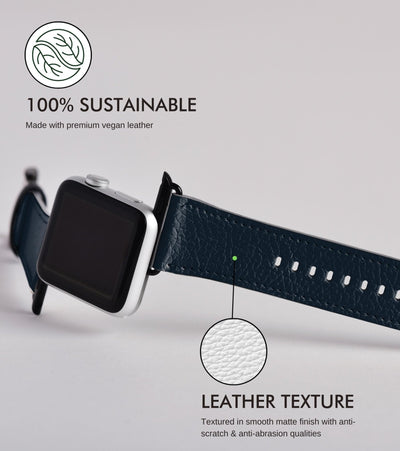 This sleek Navy Blue Apple Watch Band is strikingly stylish yet simple. The color, as deep as the ocean, invites monochrome lovers and explorers alike. Made from sustainable vegan leather, it’s the perfect mix of style and durability.