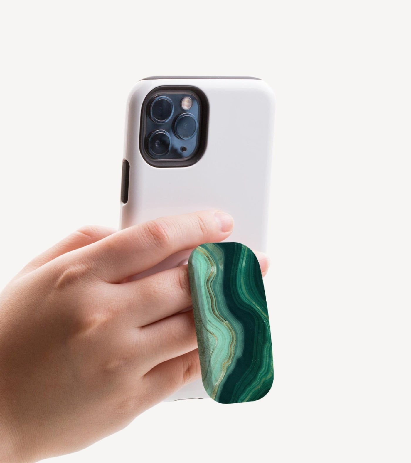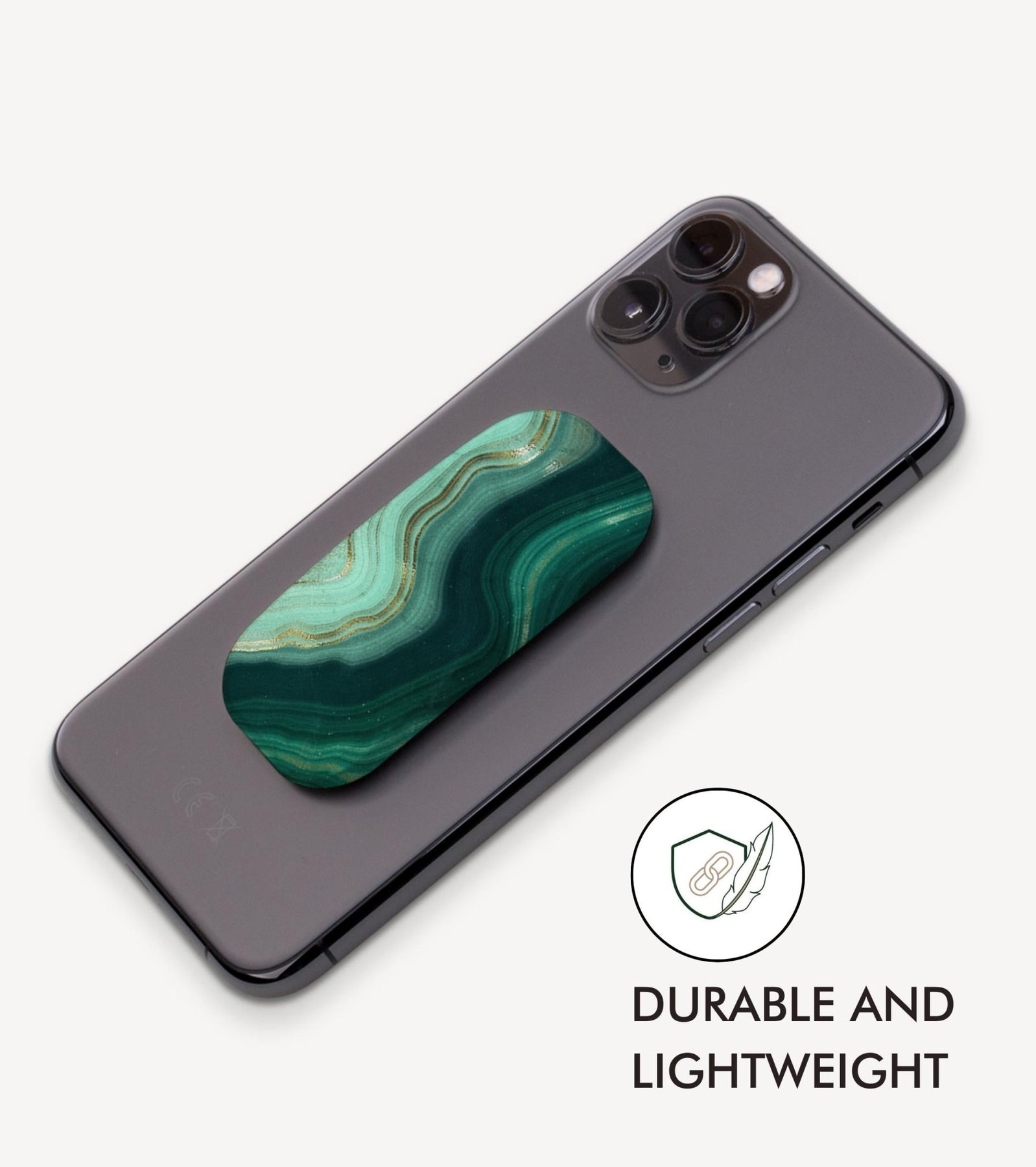 Discover Emerald Essence, a stunning phone grip inspired by the beautiful green agate stones, representing the depth and richness of life itself.